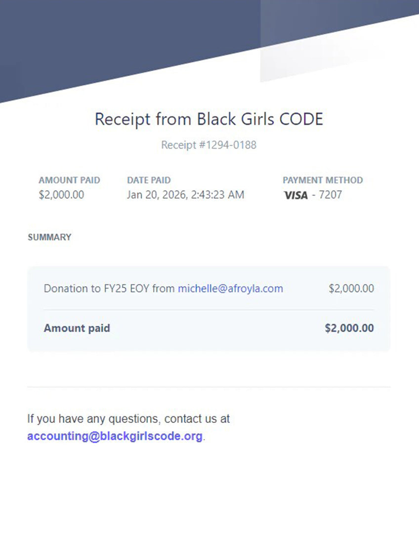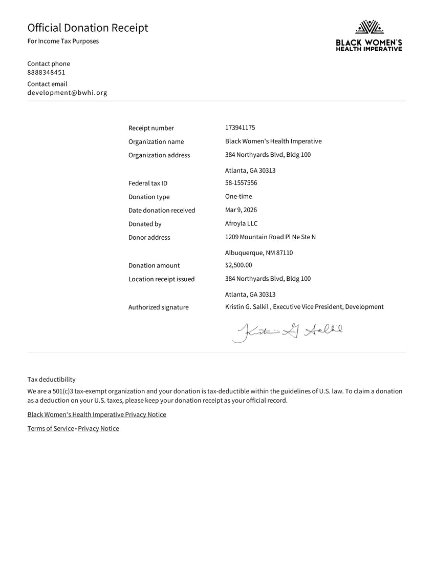 Through your support, we've donated to organizations like Black Girls Code and Black Women's Health Imperative — investing in the health, education, and future of Black women and girls. Every order moves us forward together.