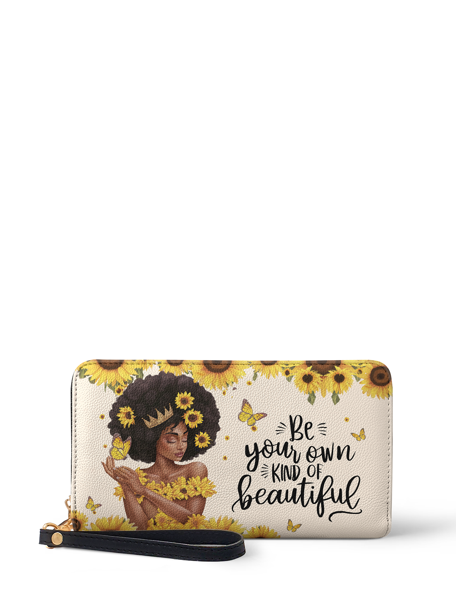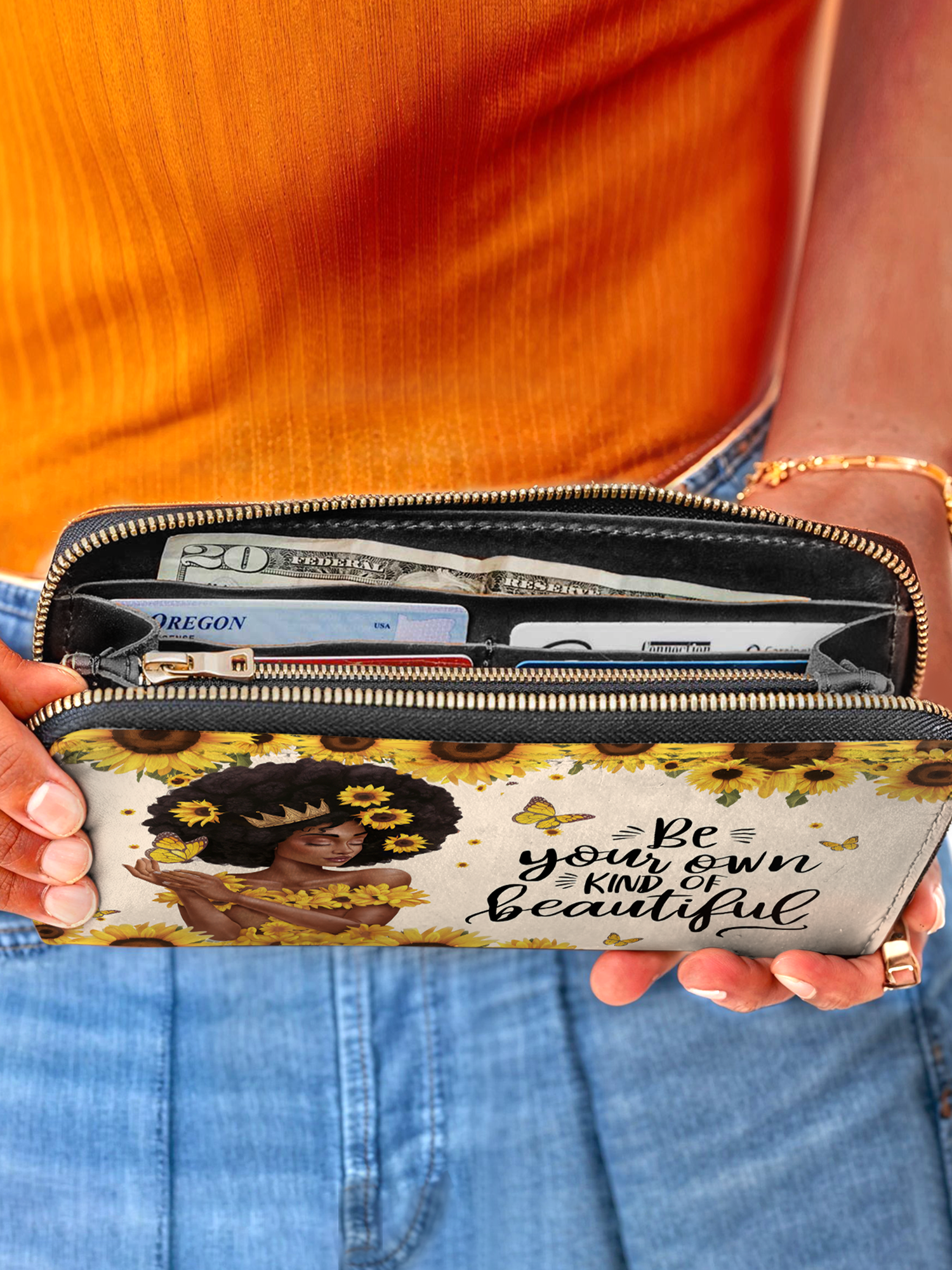 This wallet is spacious and stylish, holding beauty essentials, cash, cards, and a phone with ease.
