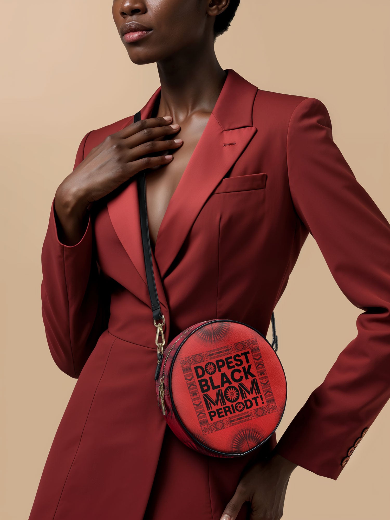 The Tajimom crossbody doesn’t play—it says it straight. Dopest. Black. Mom. Periodt. With bold black tribal lines stamped on fire-red leather, this bag brings the heat and the pride. It's loud, it's proud, and it's for the mama who walks like she knows exactly who she is. Whether you’re stepping out solo or with the whole crew behind you, this bag makes one thing clear: you’re that mom, and you’re doing it with style.
