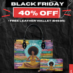 This handbag is covered in affirmations, each reflecting the undeniable power of Black women: brave, beautiful, ambitious, magical, educated, and proud. It’s more than a bag—it’s a reminder to walk with confidence and embrace every part of who you are. Wear your pride, carry your essence.