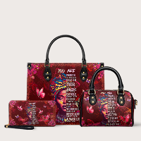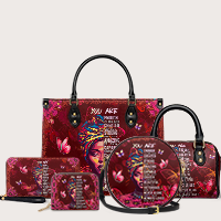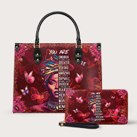 The Imani Affirmation handbag in red is bold, radiant, and filled with truth. Every word on this bag speaks life—reminding you that you are strong, chosen, beautiful, and always loved. Surrounded by butterflies and blooming florals, it’s a walking declaration of worth. If the blue version whispers, this one sings. Loud. Proud. Unapologetic. It’s not just a bag—it’s a daily affirmation wrapped in color and confidence.