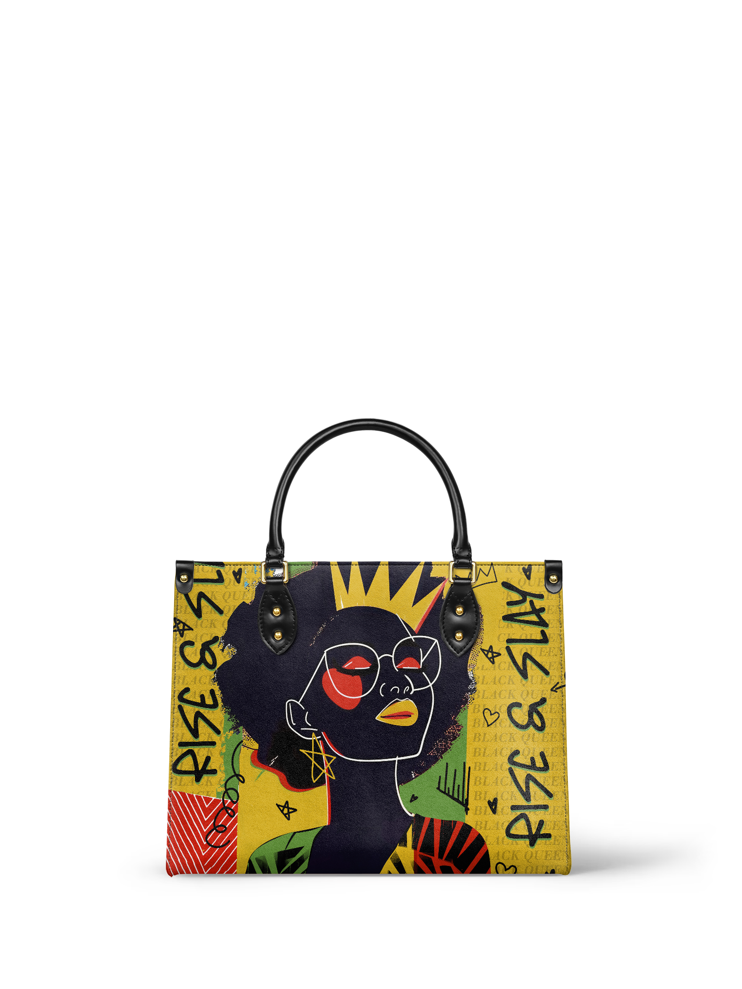 Featuring the empowering Rise & Slay artwork, this bag is a tribute to the courage and beauty of Black queens. Spacious, stylish, and unapologetically bold—carry Aina as a daily reminder to rise, slay, and shine with confidence!