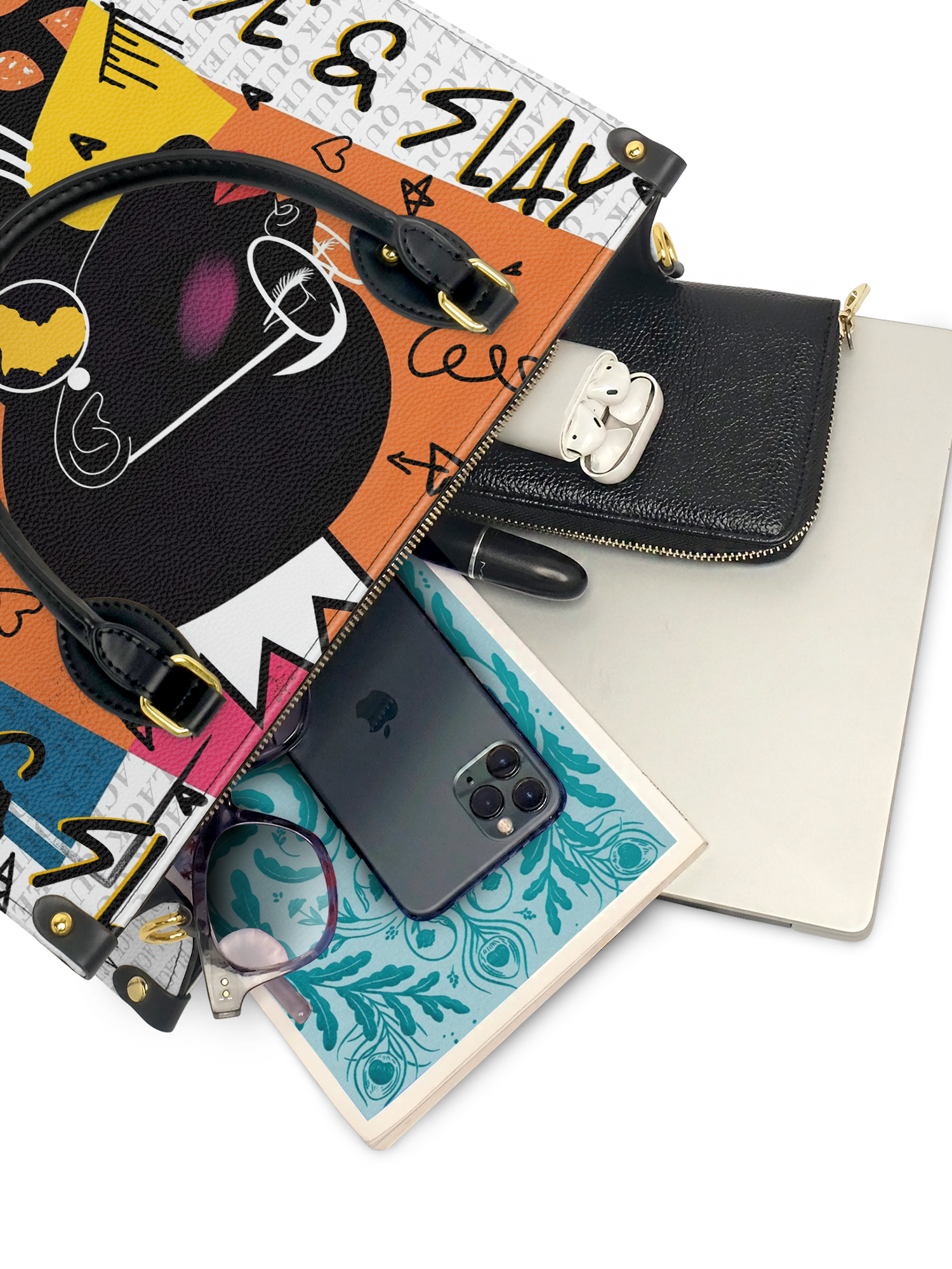 I’ve never had a bag that describes me to the point were this bag has! I’ve been dealing with Alopecia for years and always loved supporting black owned businesses but all the ladies would have Afros braids etc, when he brought me the bags that were supposed to be a Christmas gift he said he just couldn’t wait! I was so excited when I seen a lady on the purse who represented me and what I looked liked, down to the glasses and earrings! He also purchased good black wife ! It was a perfect just because gift!
