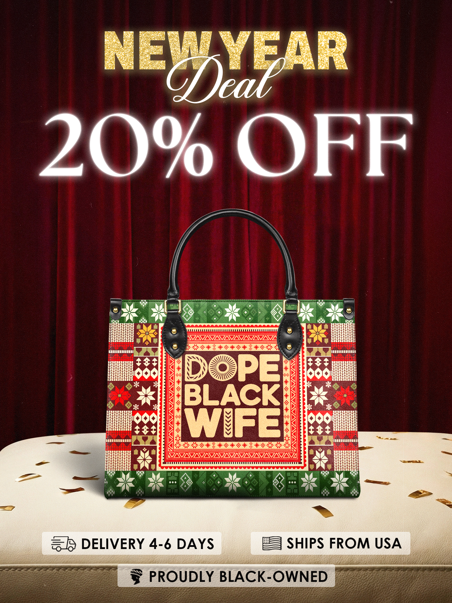 Afroyla "Dope Black Wife" Frosted Pine Leather Handbag Deal