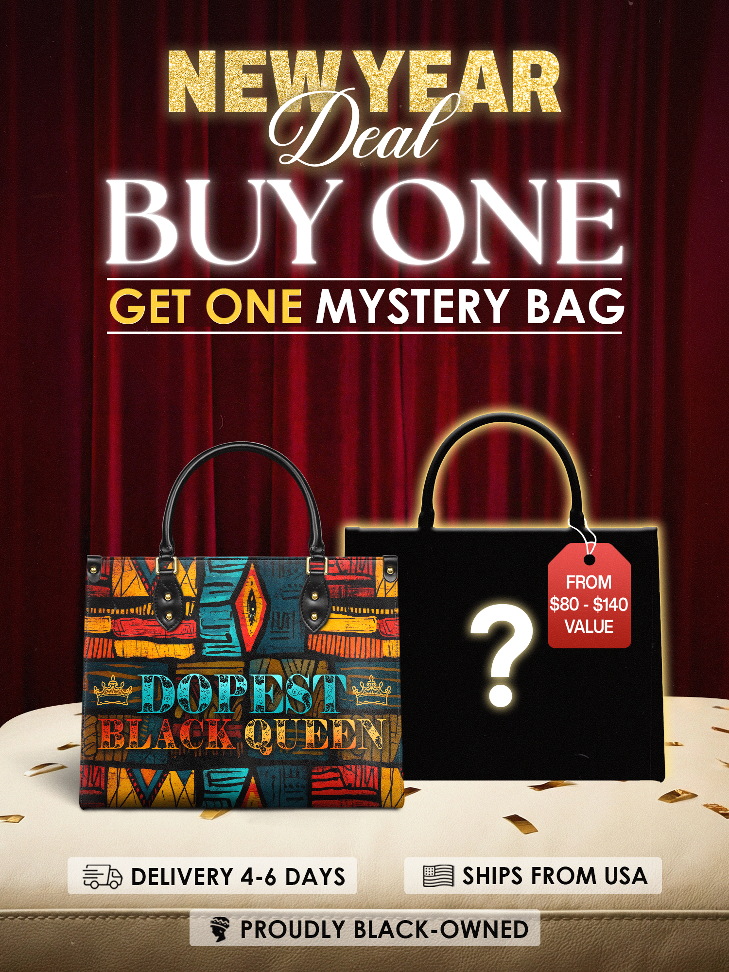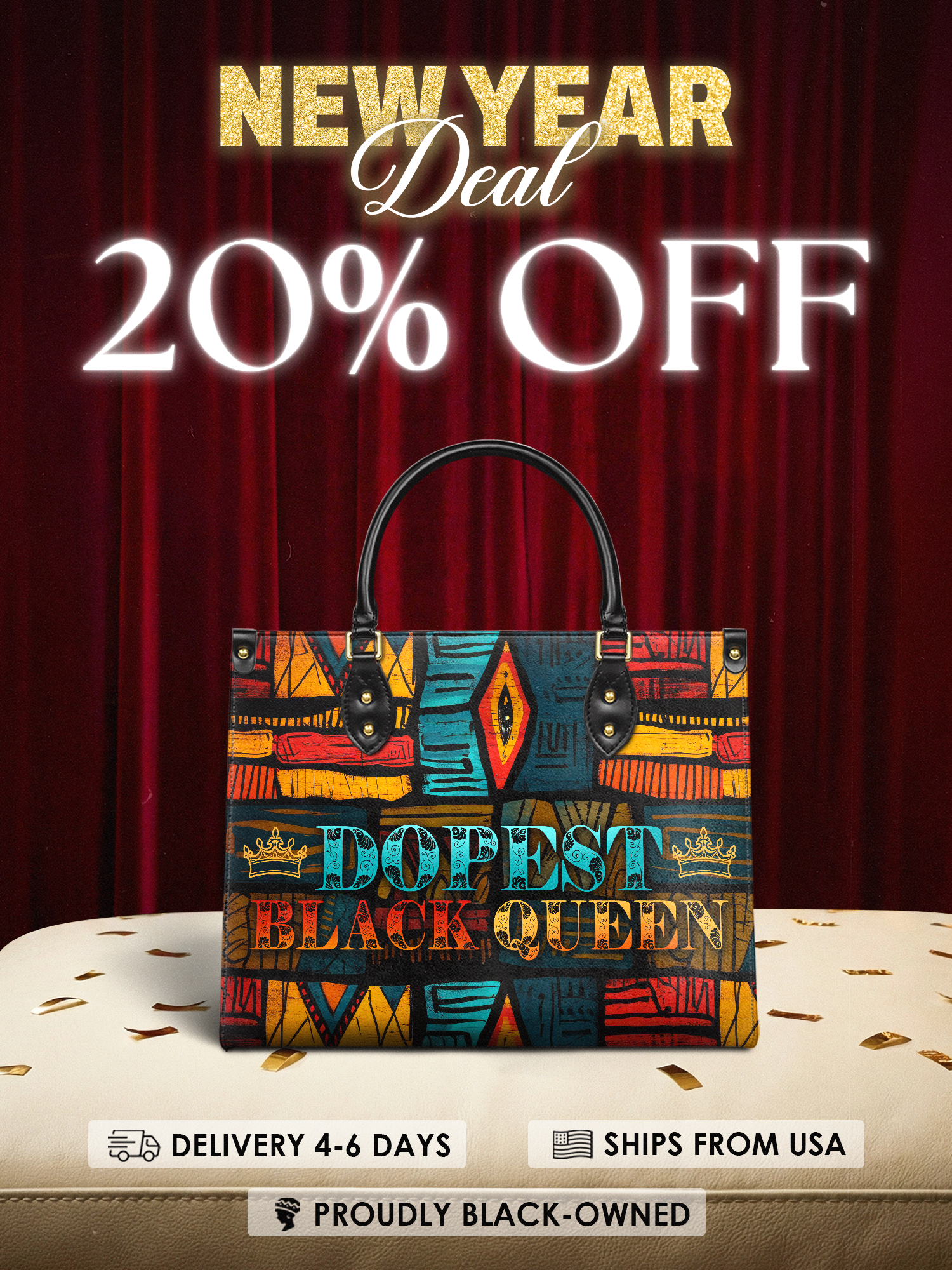 The Dopeya isn’t just a handbag—it’s a whole mood. It was made for the Black woman who’s done shrinking, done hiding, and done downplaying her dopeness. The one who walks in rooms and shifts energy without saying a word. Every bold African-inspired pattern, every brush of color, is a mirror of your fire—loud, proud, and unbothered. And the words? DOPEST BLACK QUEEN? That’s not hype. That’s a reminder. This bag was made for you to carry your crown everywhere you go—and never forget who the hell you are.