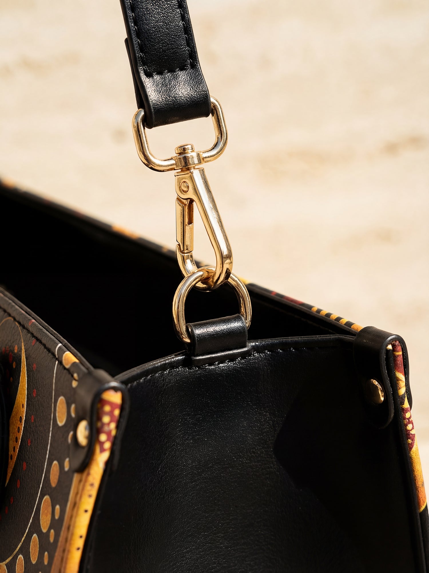 With rich, rhythmic swirls in burnt orange, bold golds, and deep chocolate brown, the Makeda handbag commands attention without saying a word. But when she does speak? Oh, she declares BLACK QUEEN MAGIC loud and proud in luxe golden lettering stitched into a deep terracotta patch.