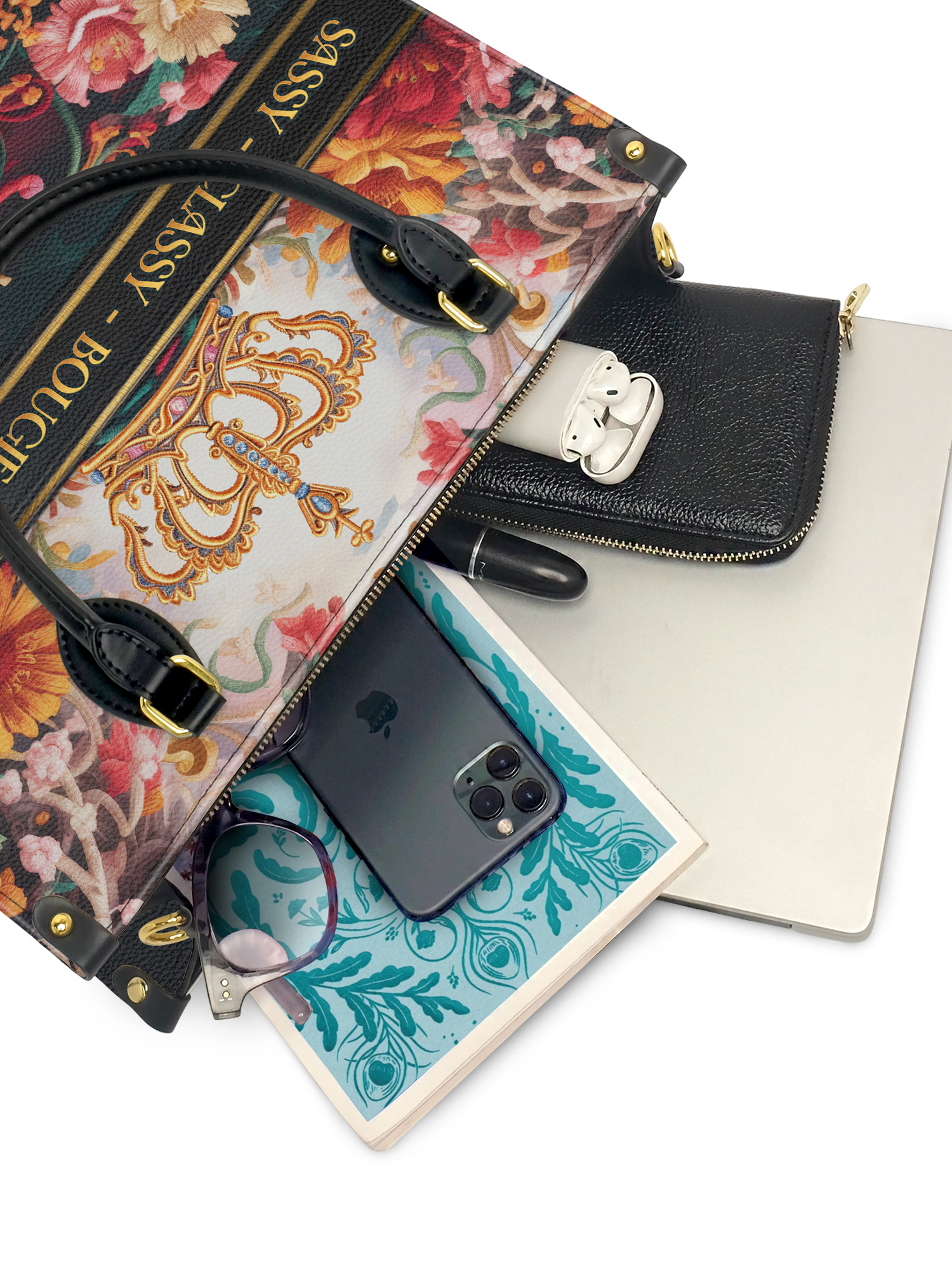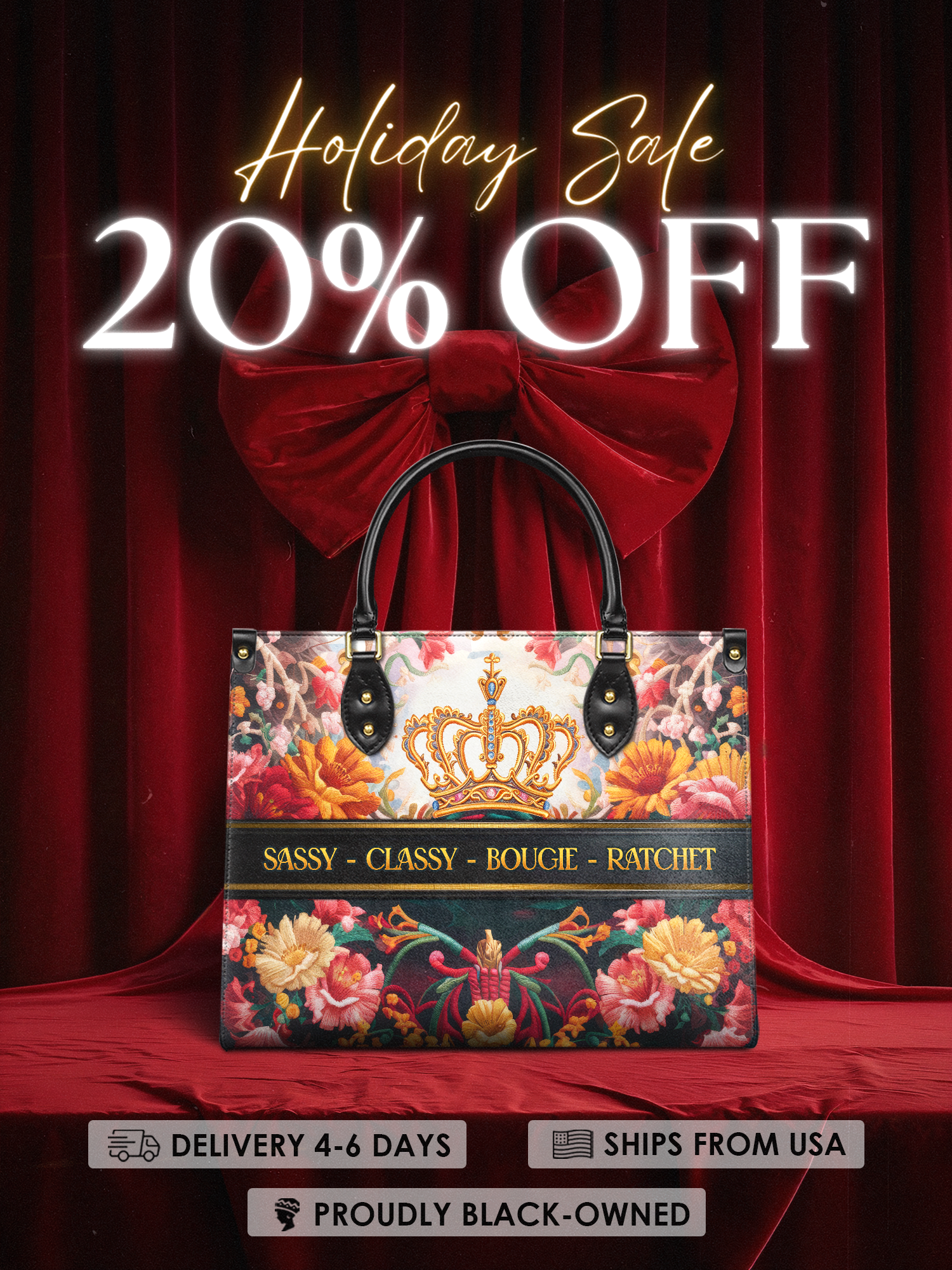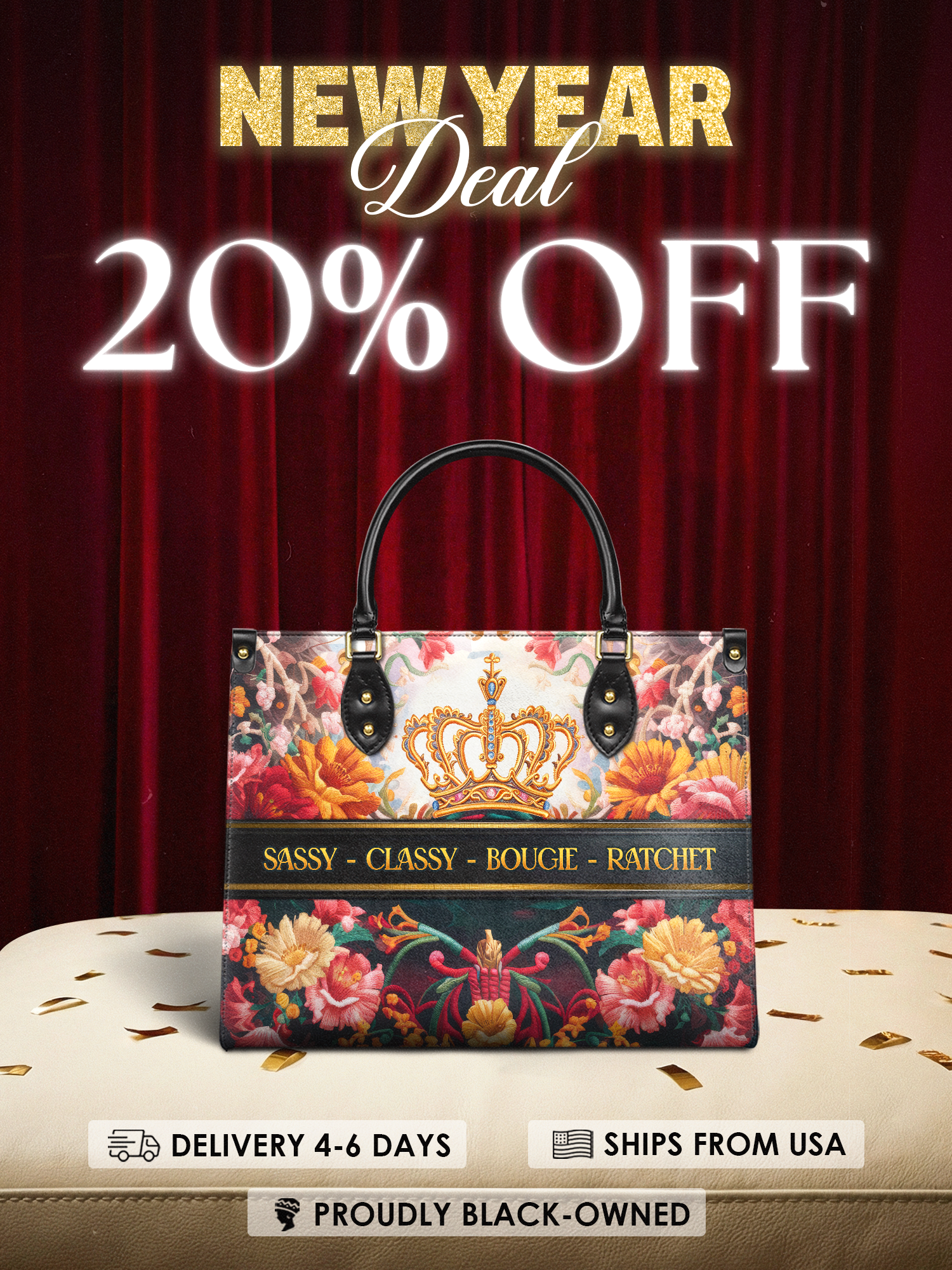 The Naija Royale Leather Handbag is a whole mood—bold, regal, and unapologetically Black. Crowned in gold and wrapped in florals, it celebrates every side of you: sassy, classy, bougie, ratchet. Because royalty comes with layers, and this bag carries them all—loud, proud, and fly with every step.