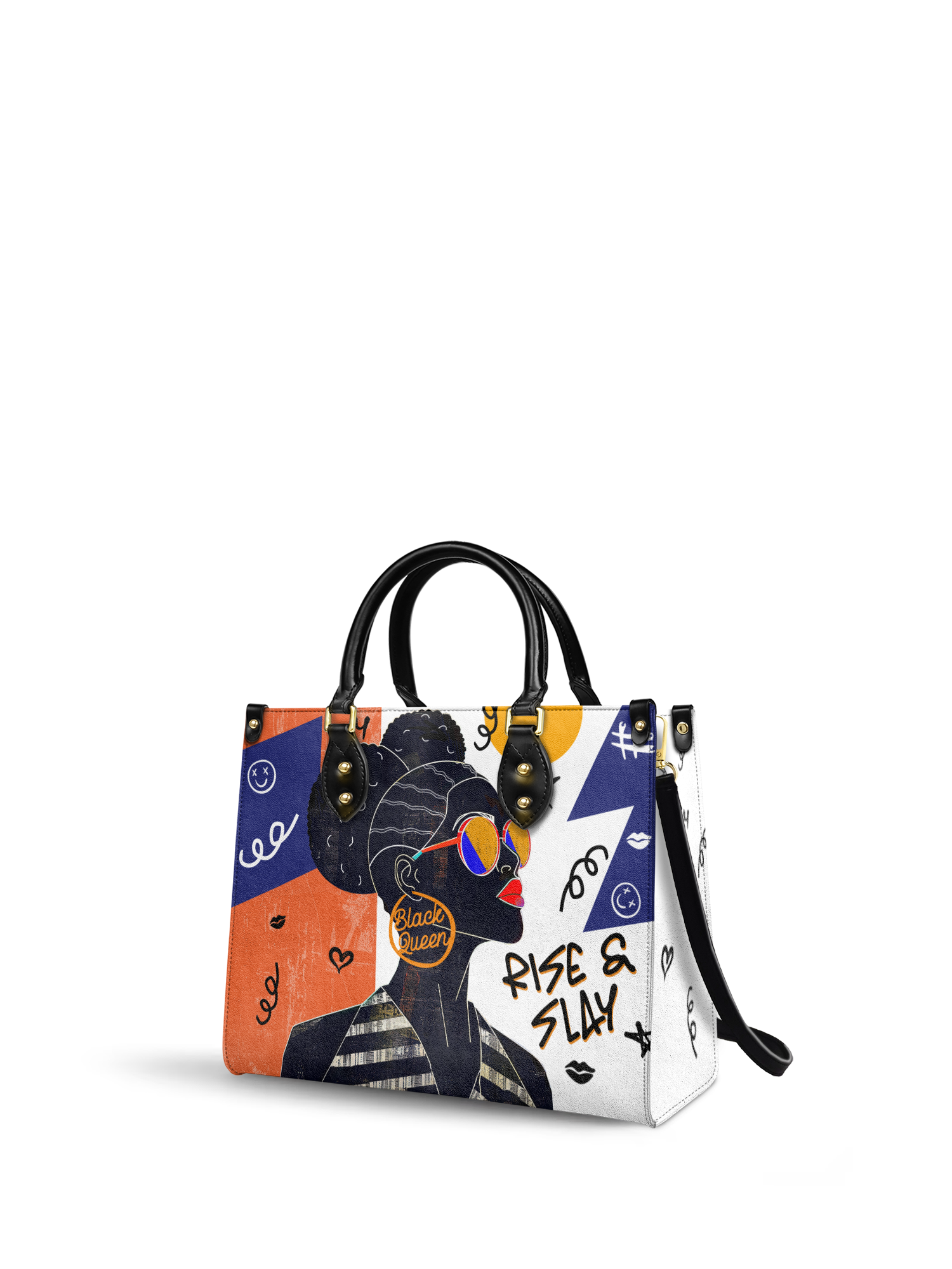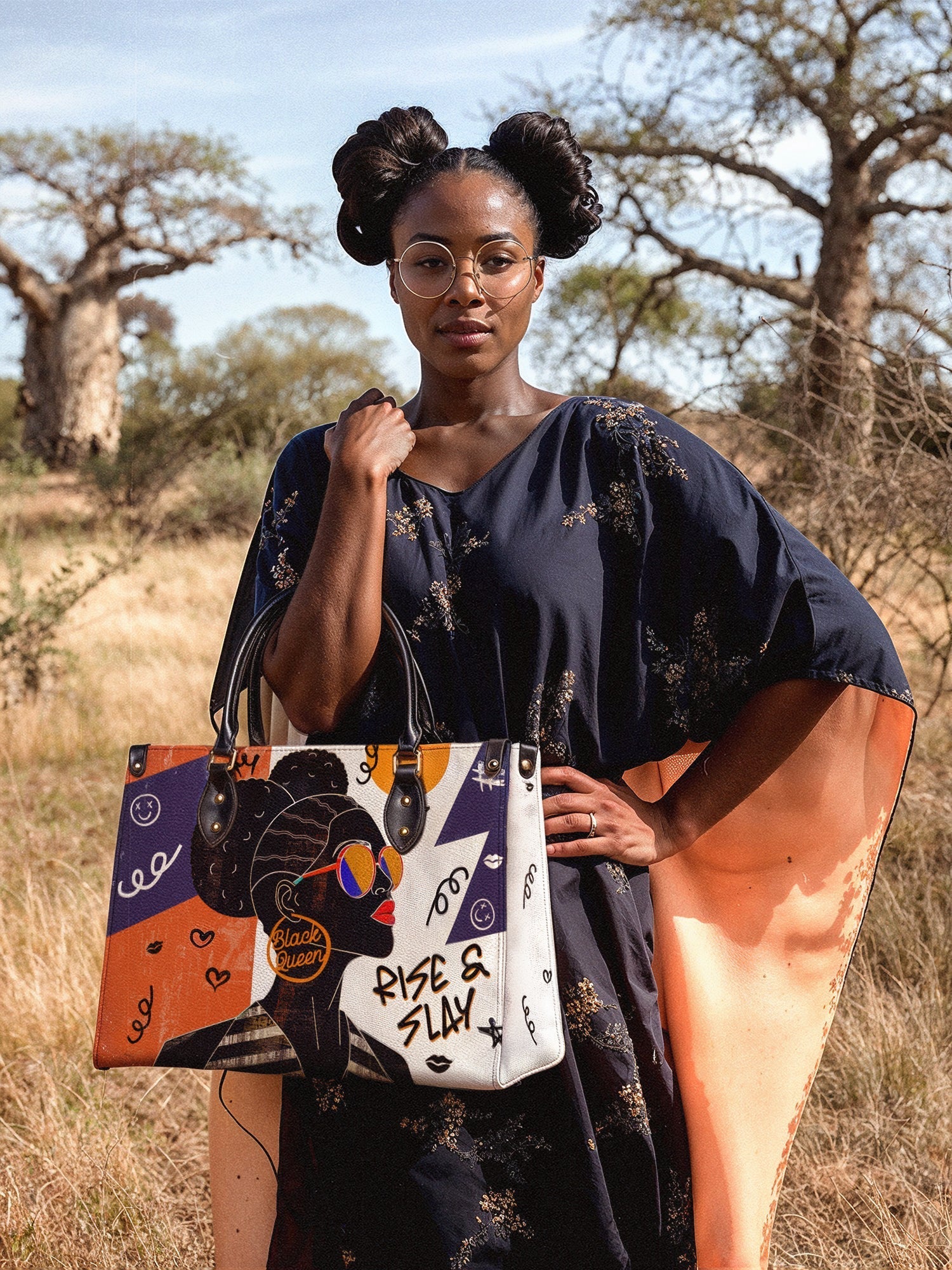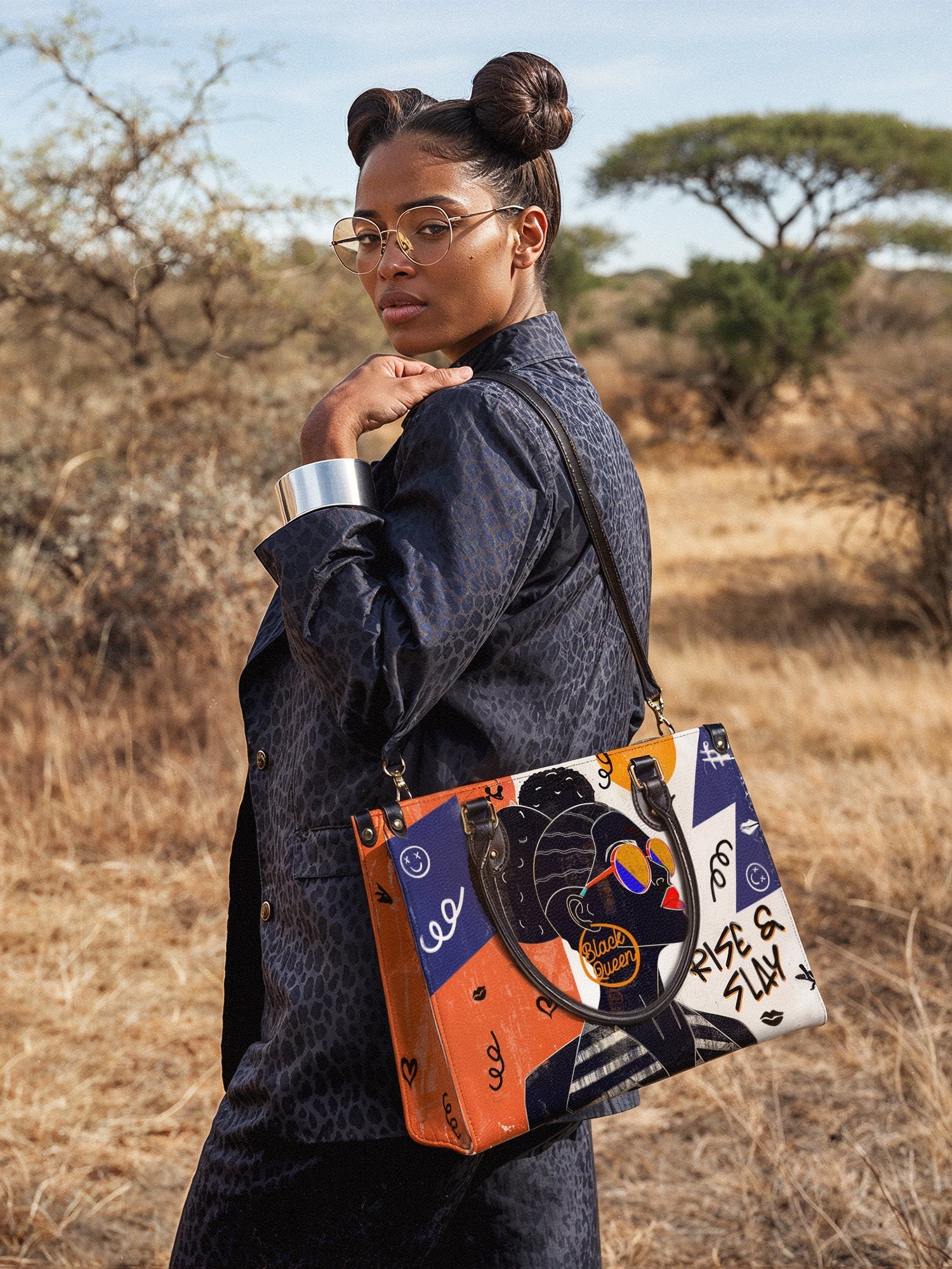 The Sanaa Handbag, inspired by the Swahili name Sanaa, meaning "art" or "work of beauty," is a tribute to the bold and unstoppable Black woman. Part of the Rise & Slay Collection, this handbag embodies confidence, power, and resilience.