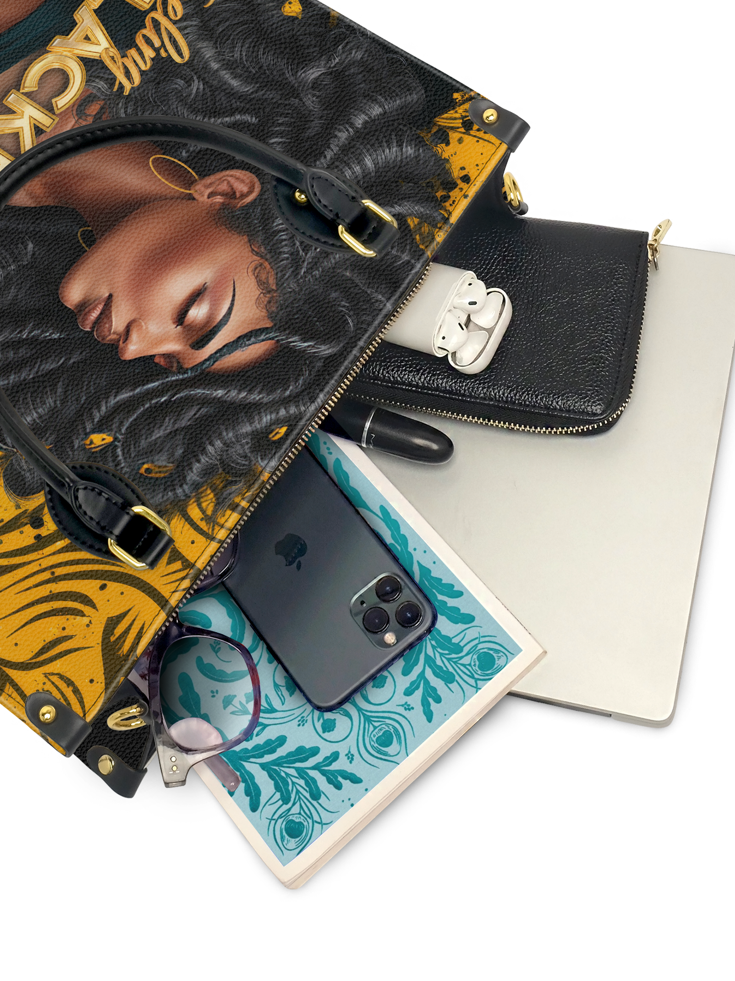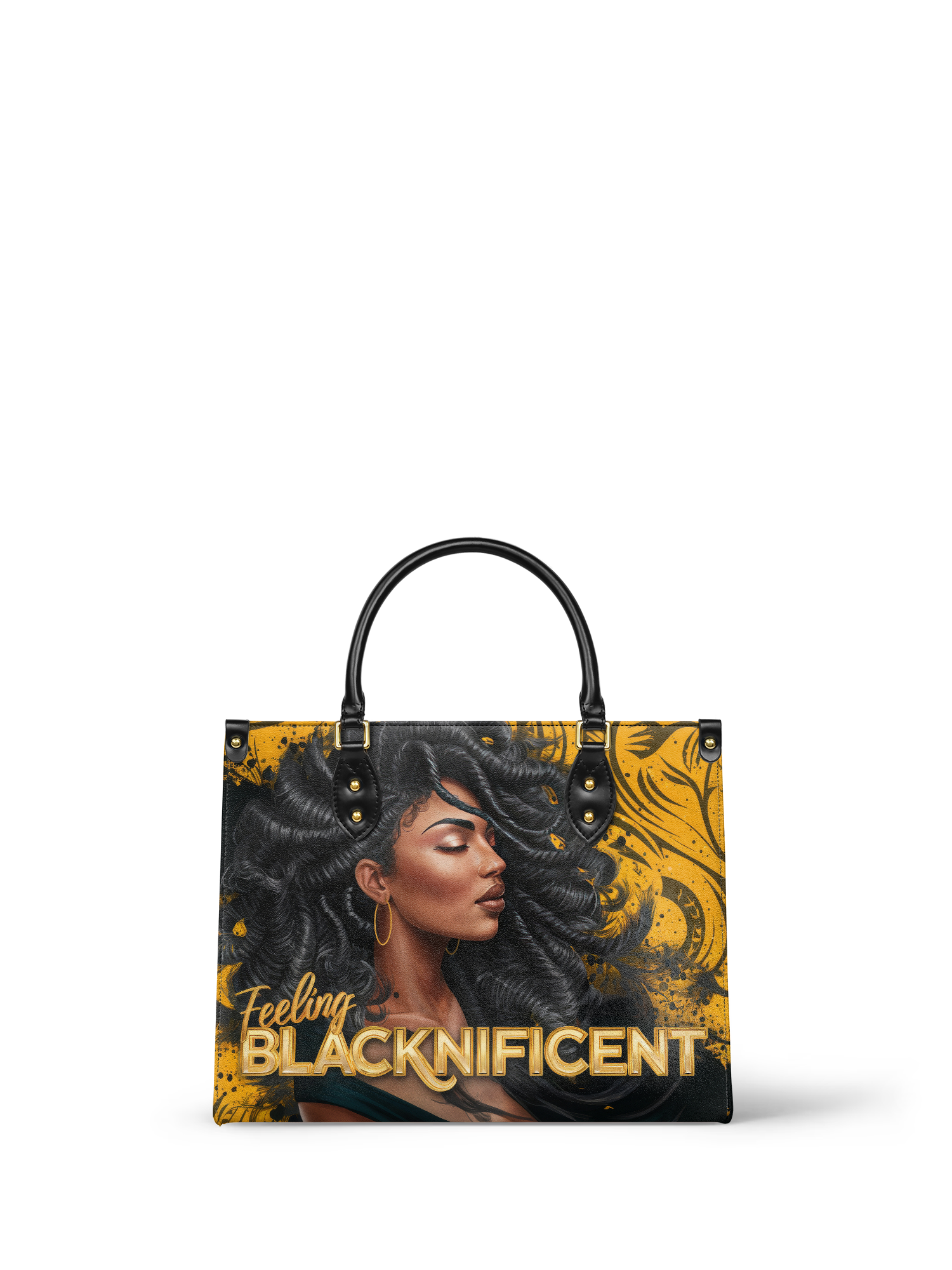 Sis… this ain’t just a bag. It’s a whole mood. The Blacknificent leather handbag is that daily reminder that your melanin, your magic, your presence—is pure power. With a golden glow backdrop and a portrait that radiates strength, style, and softness all at once, this bag doesn’t whisper confidence. It SHOUTS it. Because when you step out, you’re not just feeling good. You’re feeling Blacknificent. And every Queen deserves to carry something as bold, brilliant, and beautiful as she is.