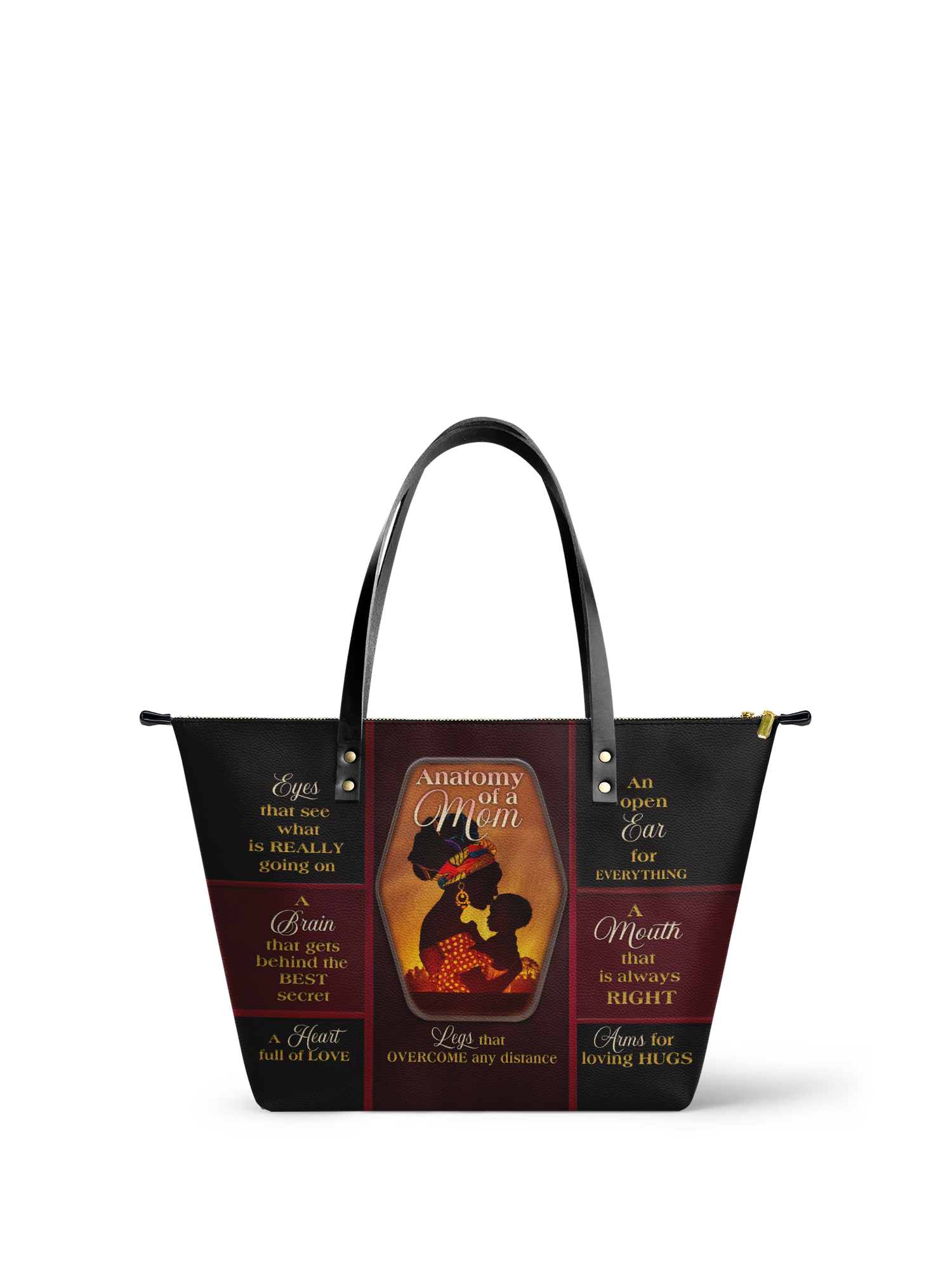 The Mamoya Tote, blending Mama (mother) and Joya (joy), is a heartfelt tribute to the love and strength of Black mothers. Featuring "Anatomy of a Mom," this design highlights the wisdom, resilience, and care that define motherhood.