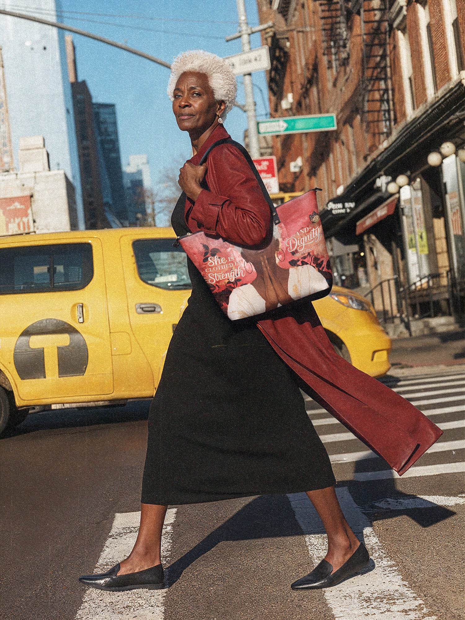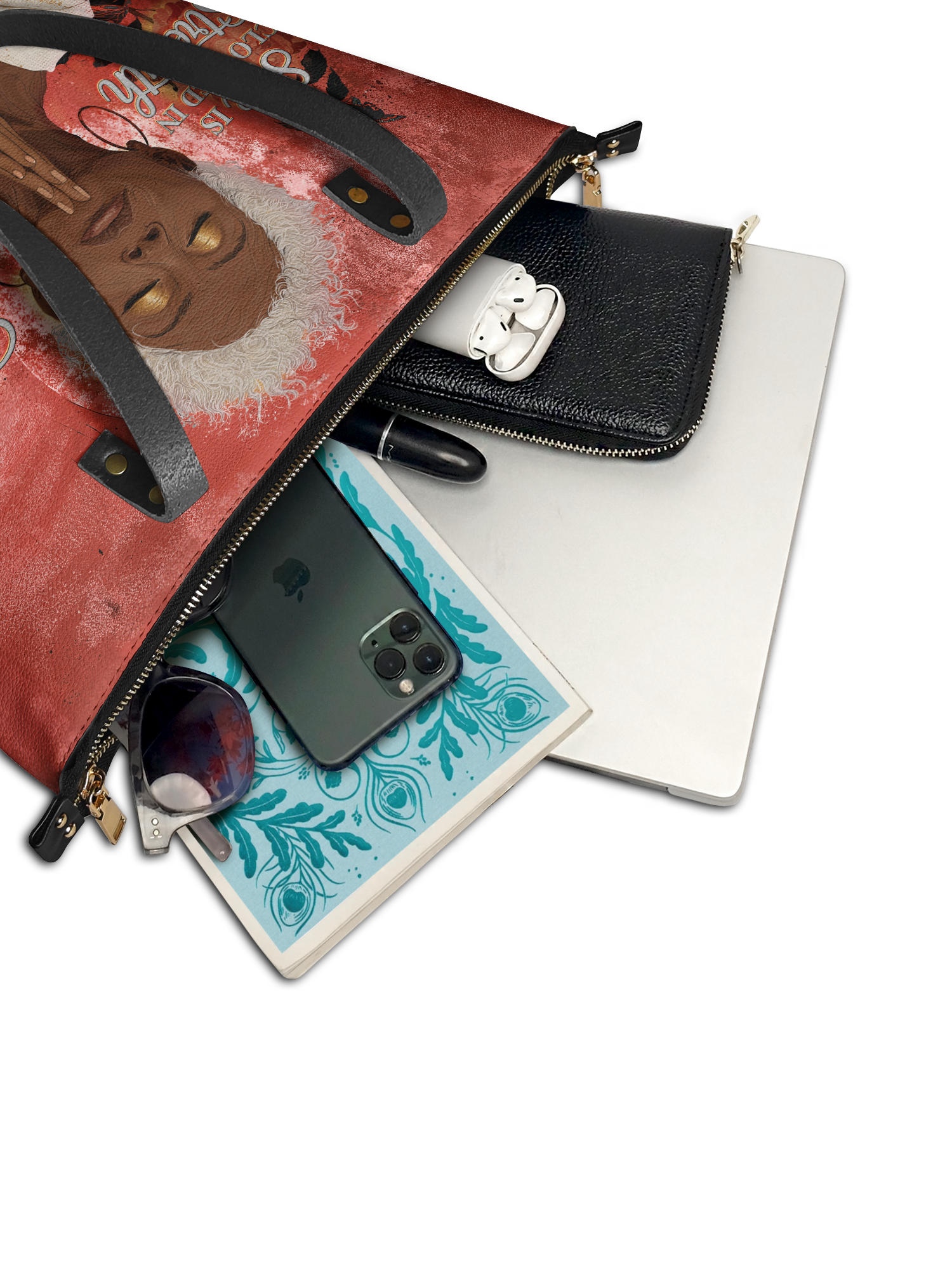 This tote bag is spacious and practical, easily fitting a 13" laptop, books, and daily must-haves.