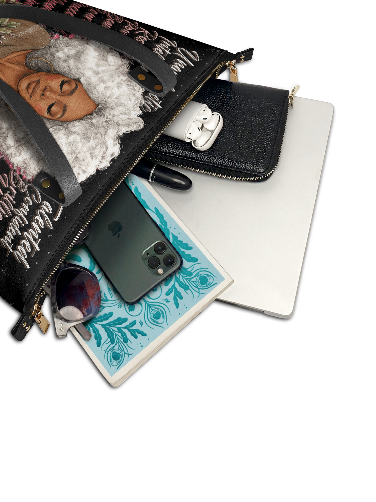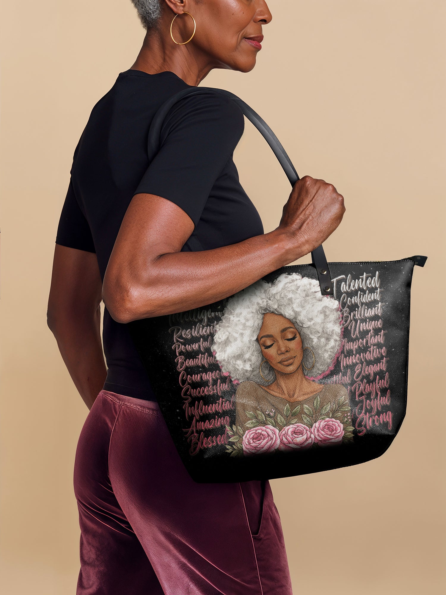 This tote bag is spacious and practical, easily fitting a 13" laptop, books, and daily must-haves.