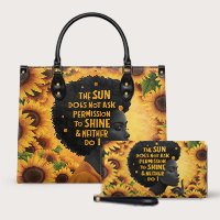 Meet "Sunaya," more than a handbag—it's your everyday reminder to shine unapologetically. Crafted in luxurious leather with striking artwork, its vibrant sunflower design boldly proclaims: "The sun does not ask permission to shine & neither do I."