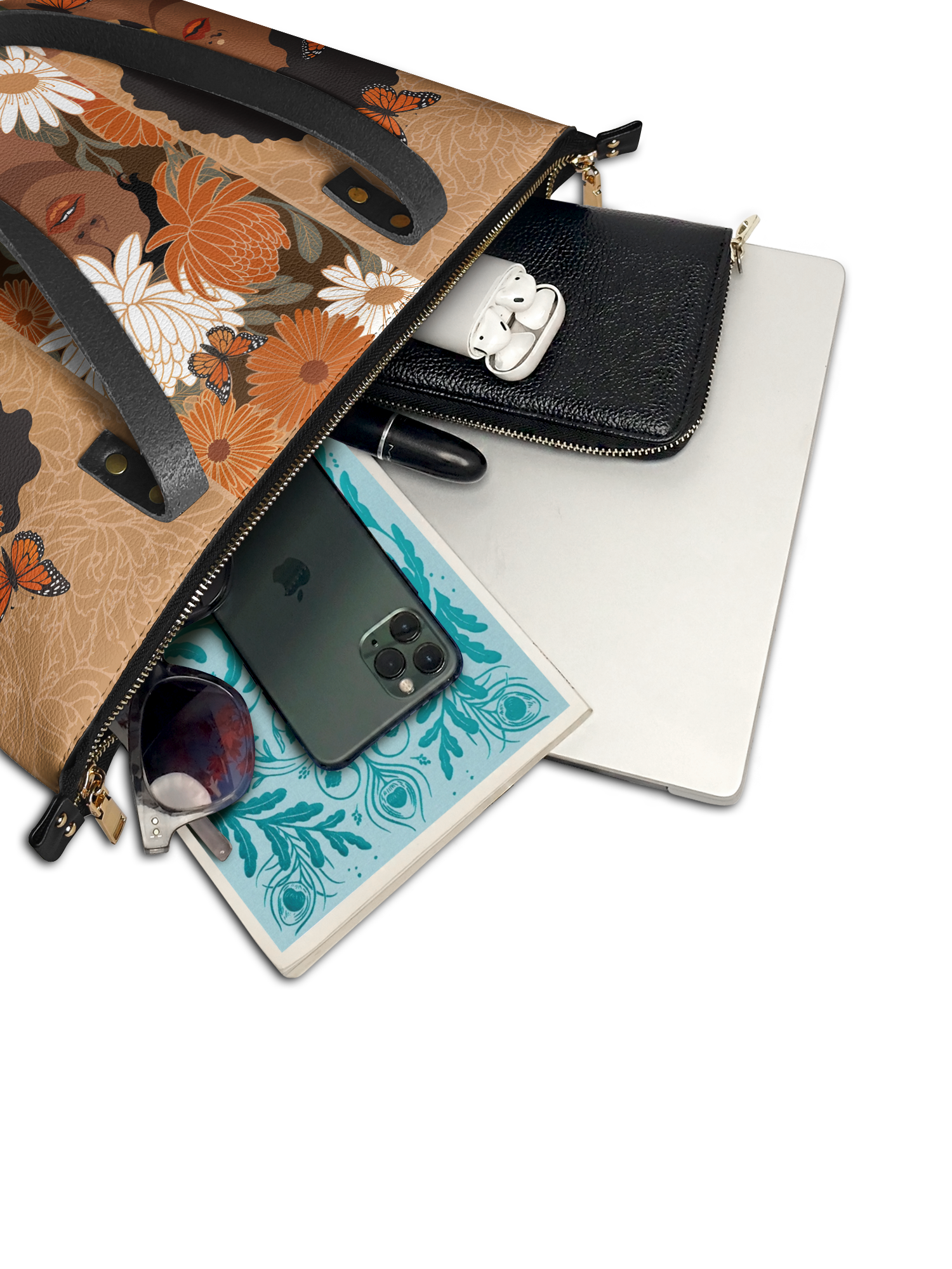 This tote bag is spacious and practical, easily fitting a 13" laptop, books, and daily must-haves.