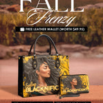 Sis… this ain’t just a bag. It’s a whole mood. The Blacknificent leather handbag is that daily reminder that your melanin, your magic, your presence—is pure power. With a golden glow backdrop and a portrait that radiates strength, style, and softness all at once, this bag doesn’t whisper confidence. It SHOUTS it. Because when you step out, you’re not just feeling good. You’re feeling Blacknificent. And every Queen deserves to carry something as bold, brilliant, and beautiful as she is.