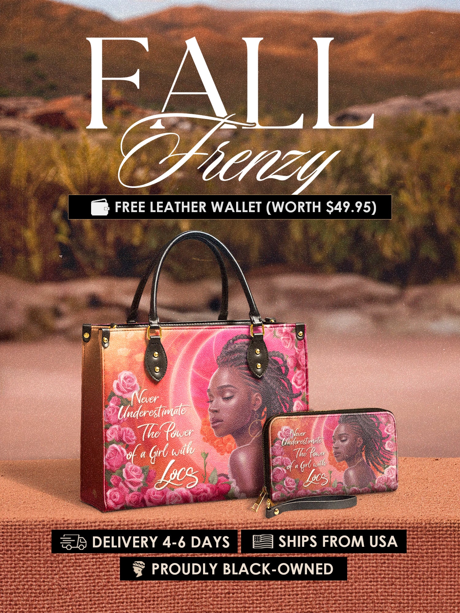 The Loclani leather handbag isn’t just a fashion statement—it’s a full-on manifesto. Drenched in soft pinks and radiant light, with a crown of roses and moonlight haloing her confidence, this piece carries the essence of every woman who walks with strength, peace, and a whole lotta power in her roots.
