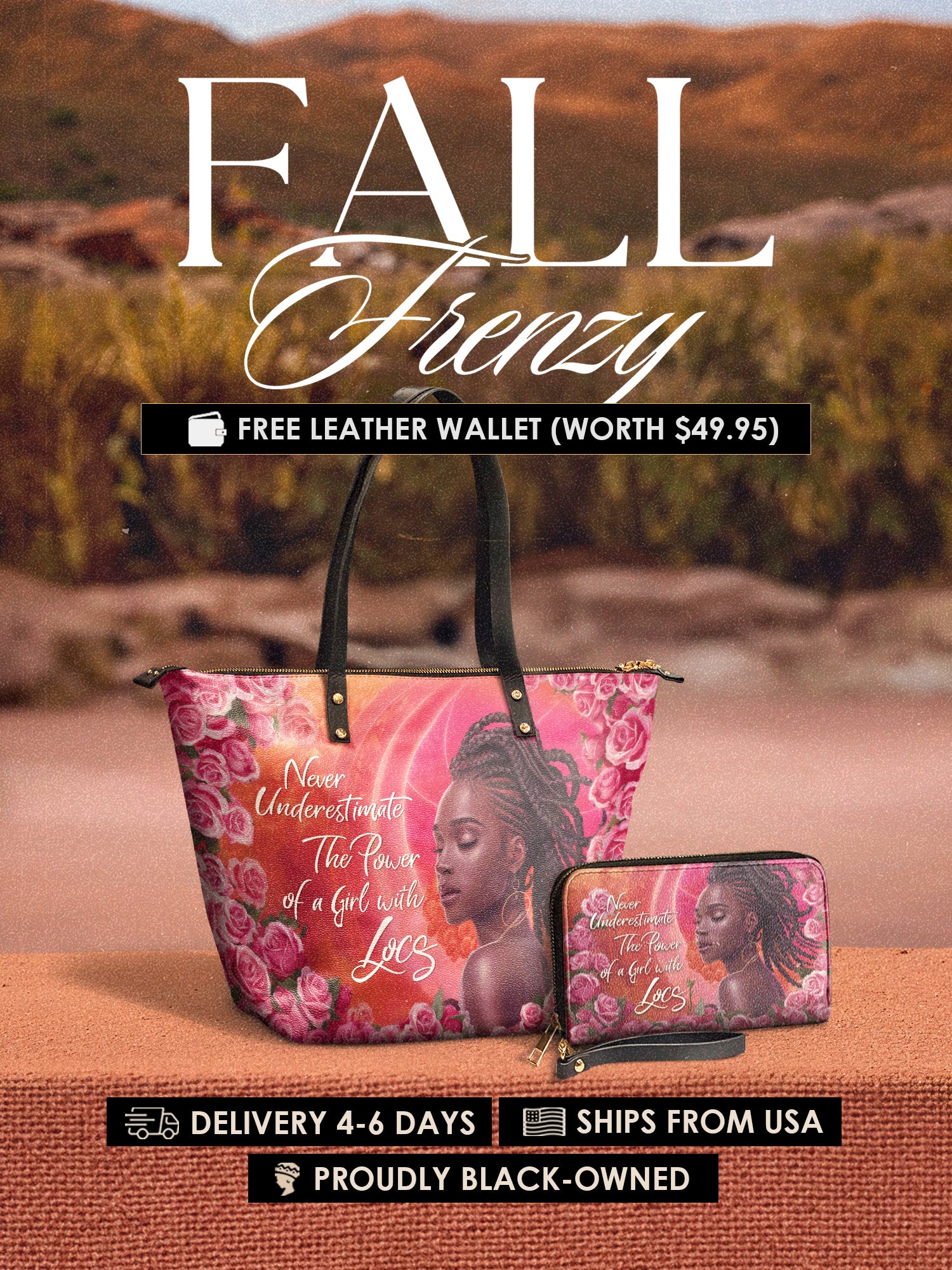 The Loclani tote is a whole love letter to the power of locs. Not just a hairstyle—but a story, a crown, a statement. She stands soft, yet strong, surrounded by roses and glowing in her truth. This bag reminds the world that when a girl’s got locs, she’s not to be underestimated. She's grounded. She's grown. And she’s walking in beauty, boldness, and grace. Carry it as a quiet flex—or a loud one. Either way, it speaks volumes before you ever say a word