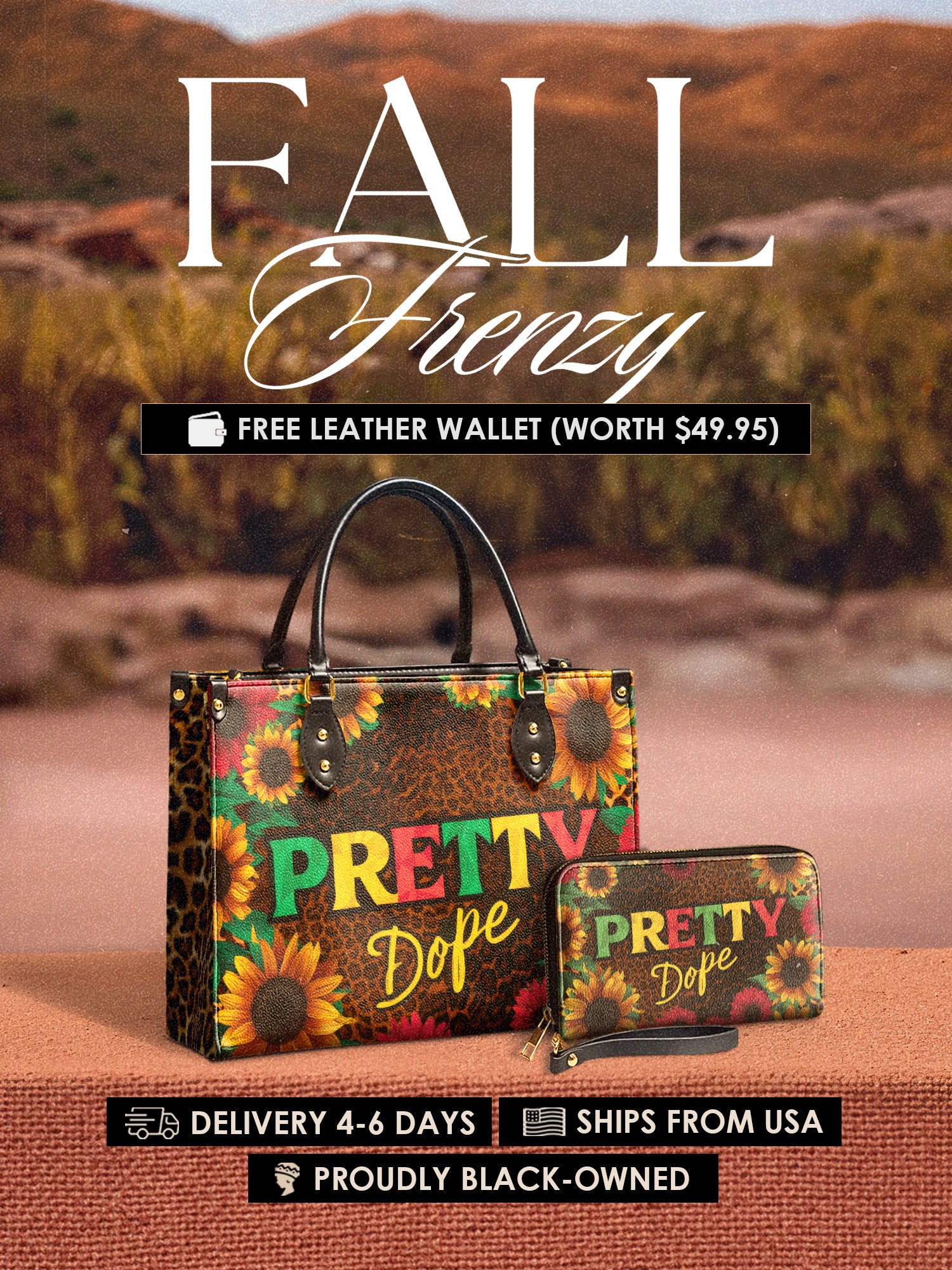 The Solya Leather Handbag is your daily reminder that being soft and radiant doesn’t mean you’re not powerful too. Surrounded by blooming sunflowers, rooted in bold leopard print, and crowned with the unapologetic truth—Pretty Dope—this bag is a full vibe.