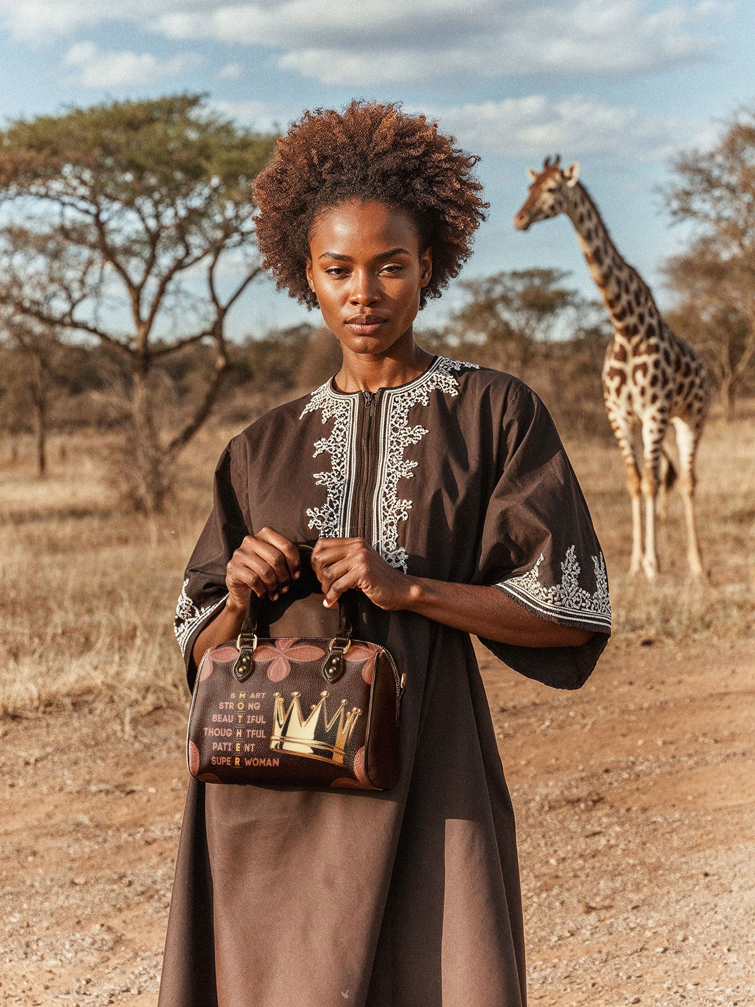 The Imarimom mini satchel is pure mom royalty. With a golden crown front and center and every letter of “MOTHER” spelling out her greatness, this bag is a whole tribute in one glance. She’s smart, strong, thoughtful, and full of grace—and now she’s got the perfect bag to match. Whether it’s a gift or a treat for yourself, this little beauty serves big queen energy every time you carry it.