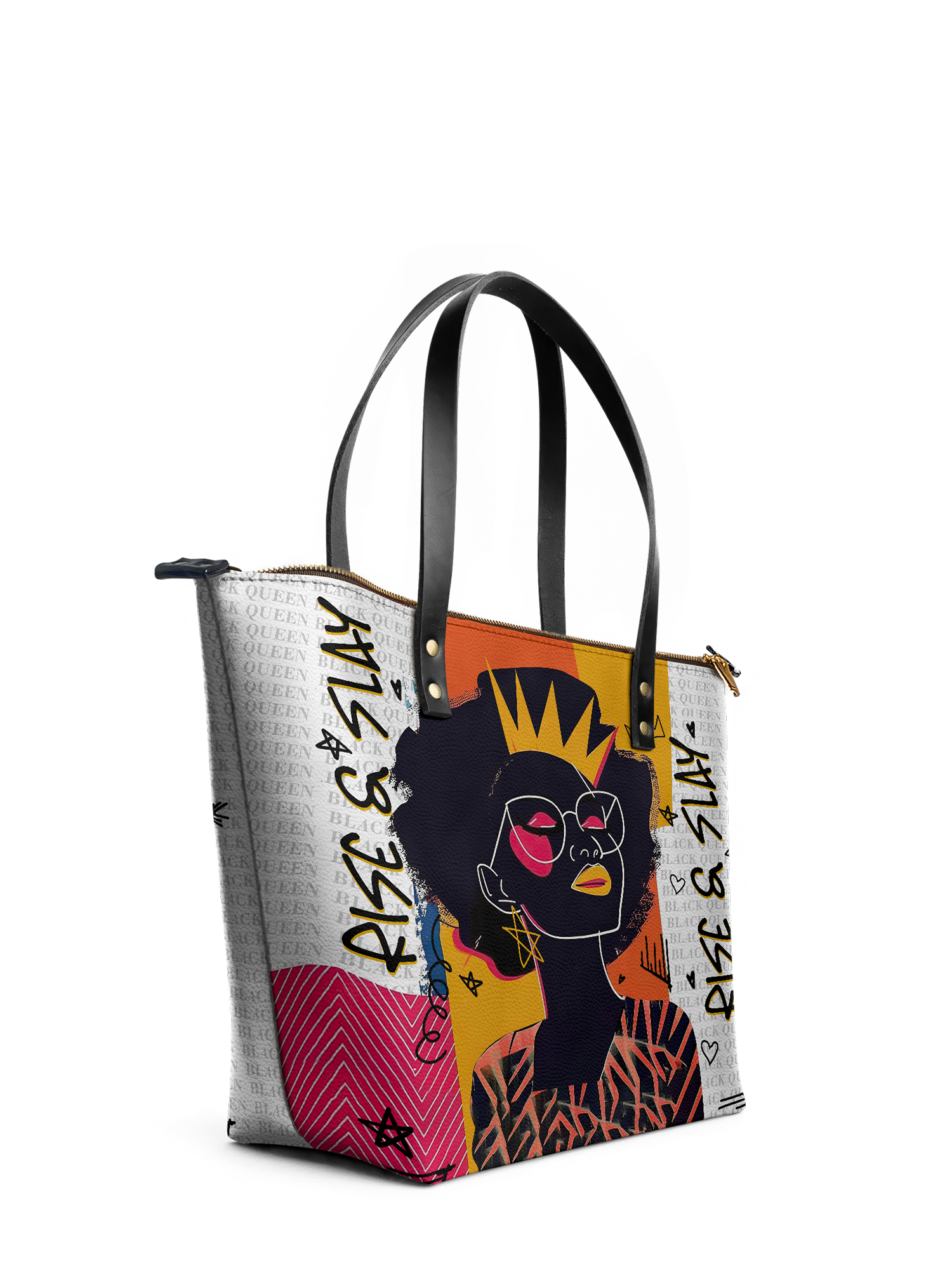 "Aina" is not just a tote—it’s a bold celebration of Black women’s strength, beauty, and resilience. Featuring vibrant Afrocentric art and the empowering Rise & Slay message, this bag is made for queens who own their power. Spacious, stylish, and durable, "Aina" carries your essentials while reminding you to shine unapologetically every day.