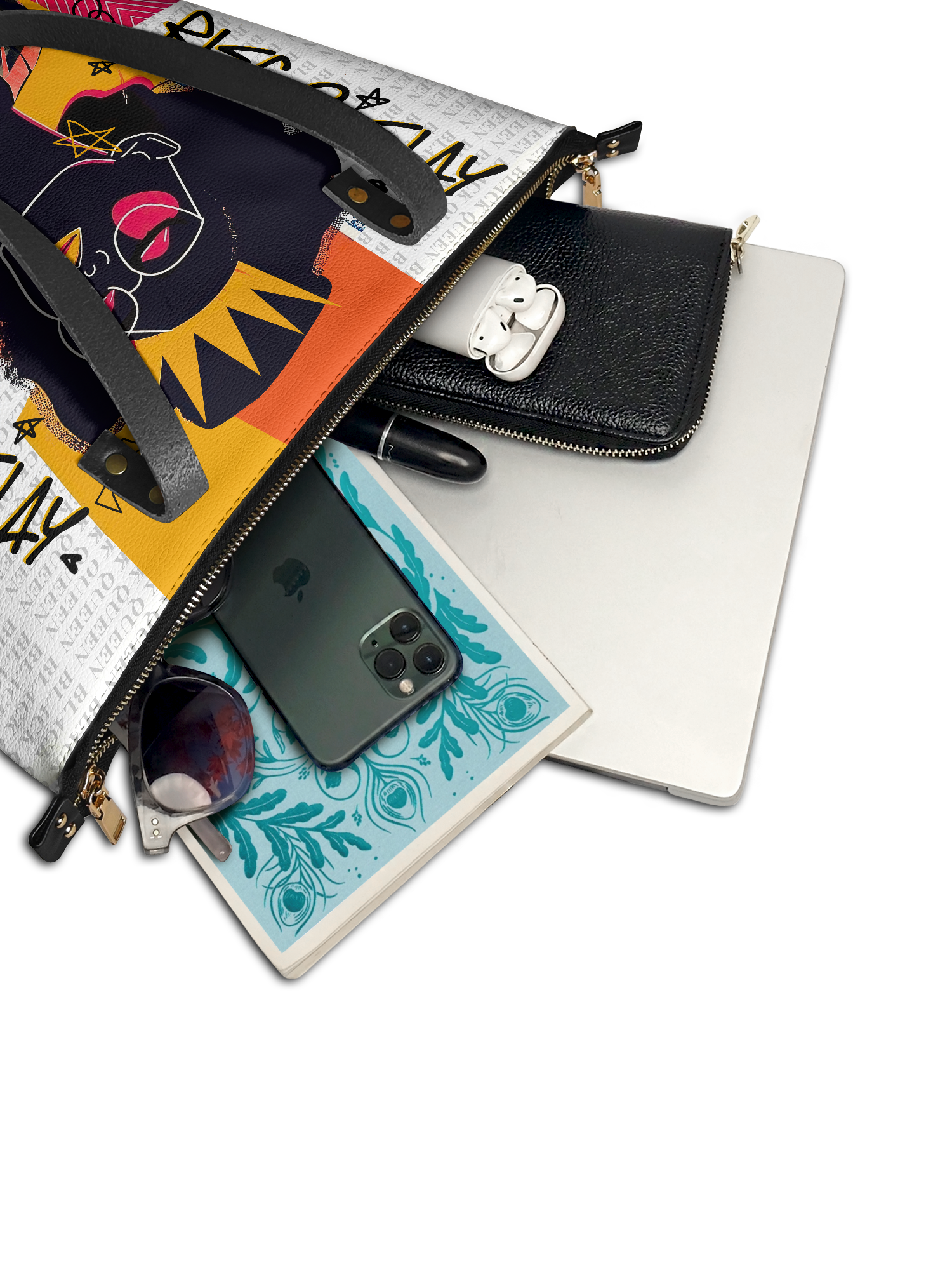 This tote bag is spacious and practical, easily fitting a 13" laptop, books, and daily must-haves.