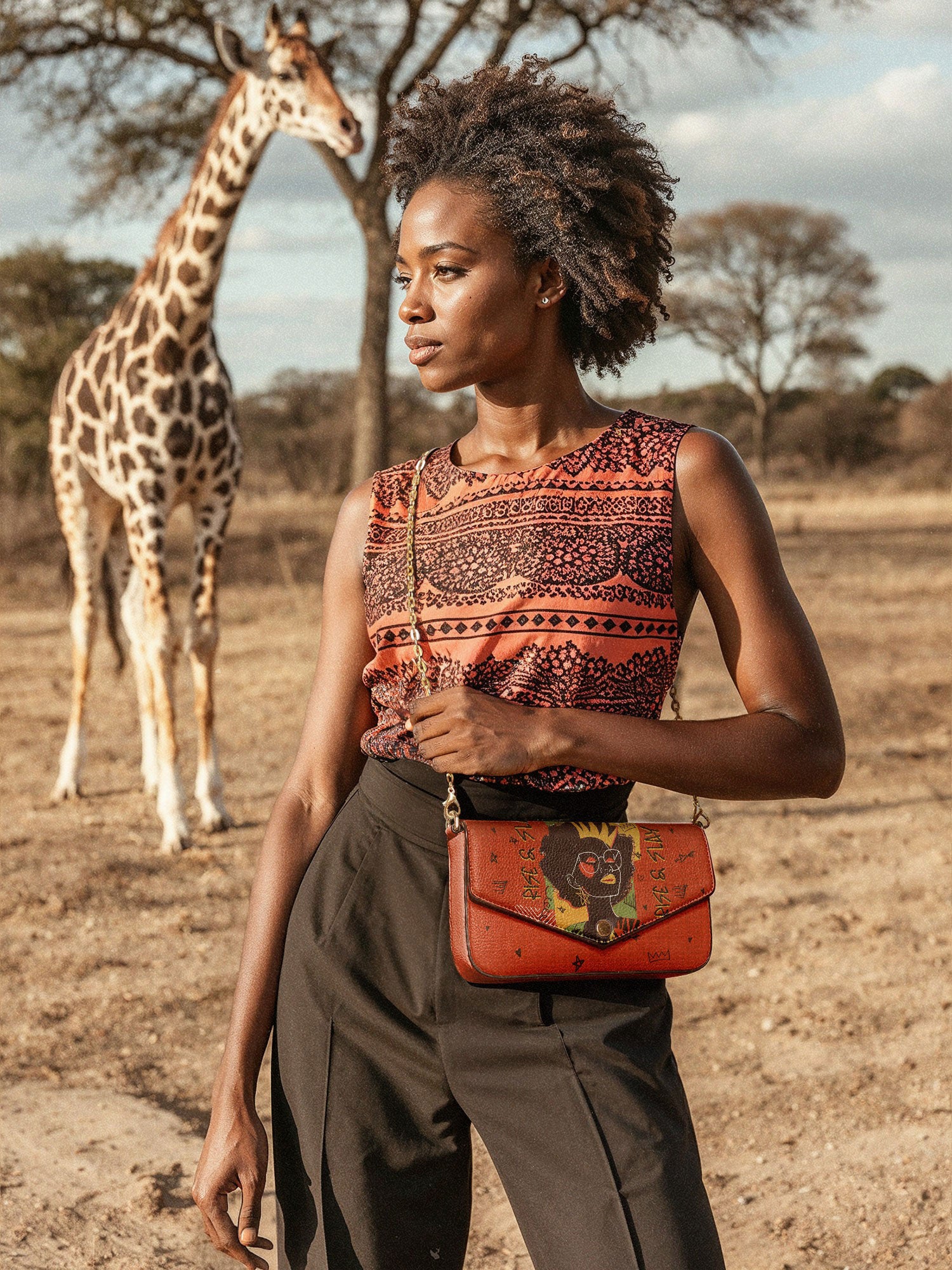 Afroyla "Aina" Flame Red Envelope Chain Crossbody Bag