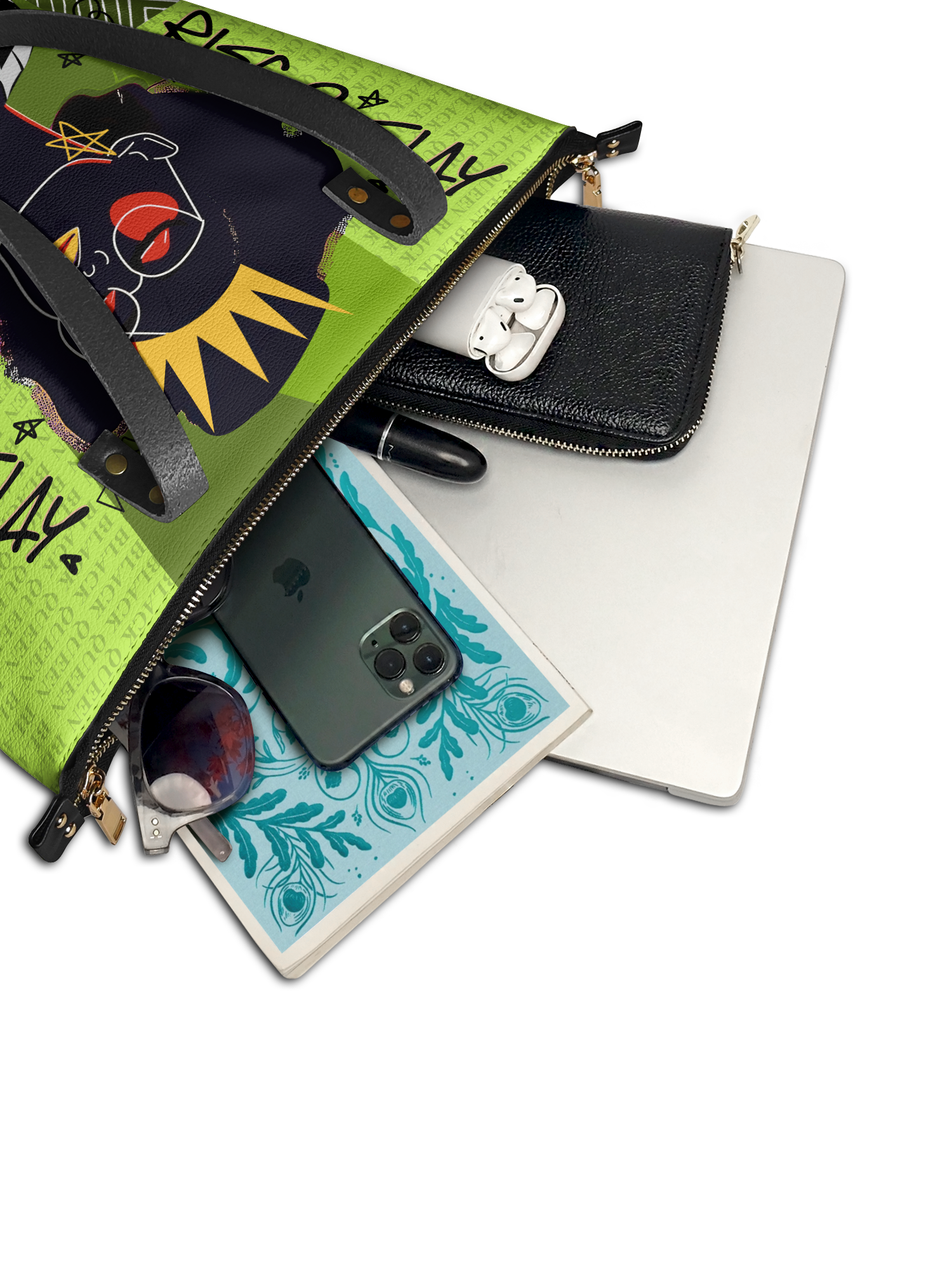 Afroyla "Aina" Lime Pop Leather Tote Bag