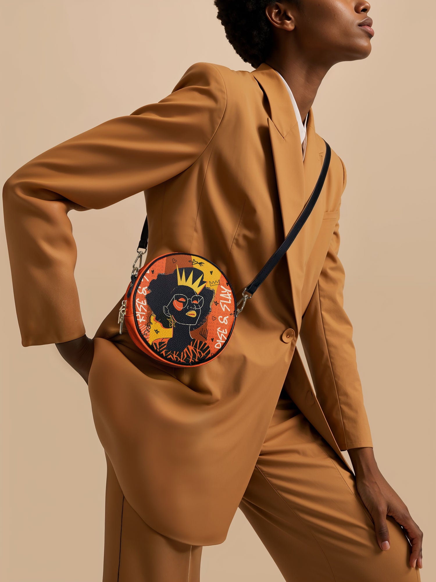 Afroyla "Aina" Orange Sorbet Circle Crossbody Bag
