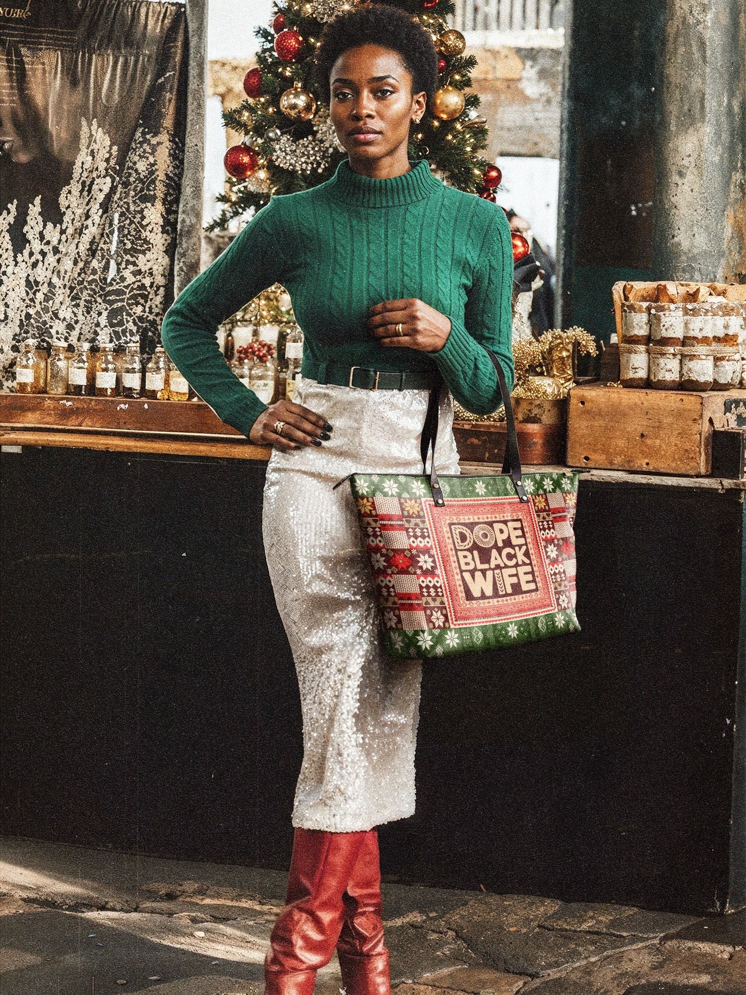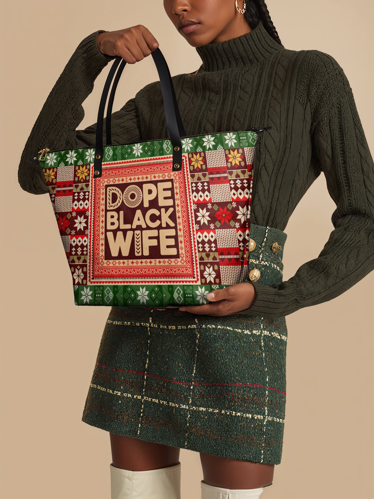 Afroyla "Dope Black Wife" Frosted Pine Leather Tote Bag Deal