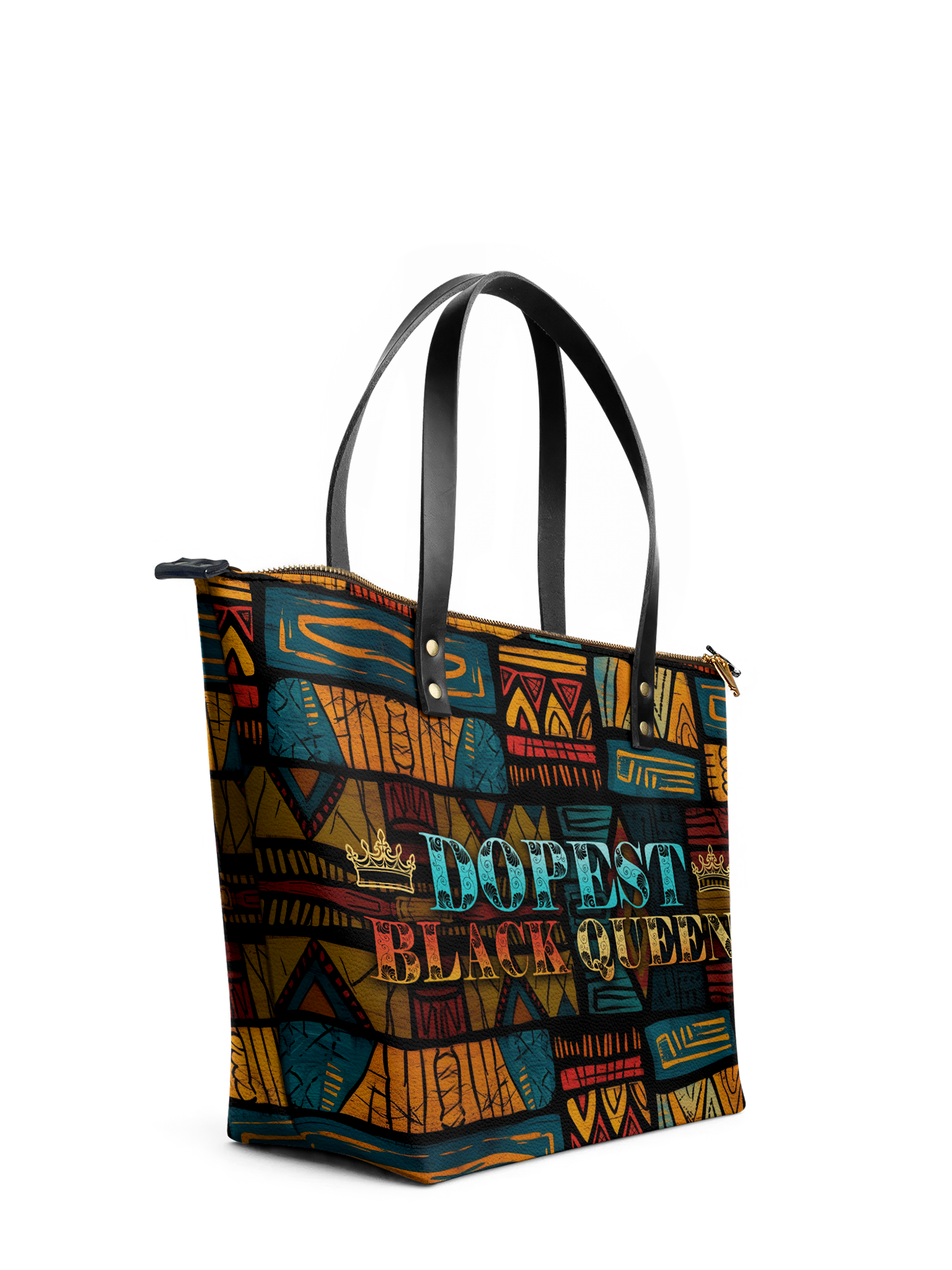 Sis, this isn’t just a tote—it’s a declaration. The Dopeya was made to be carried by a woman who’s fully tapped into her power. With its fierce African-inspired print and bold DOPEST BLACK QUEEN statement, this tote doesn’t whisper confidence—it screams it. It's for the queen who juggles boardrooms and babies, dreams and deadlines, slay and soul. Every time you carry it, you’re not just holding a bag. You’re holding space for your greatness. Loud. Beautiful. Unapologetically Black. And fly as hell.