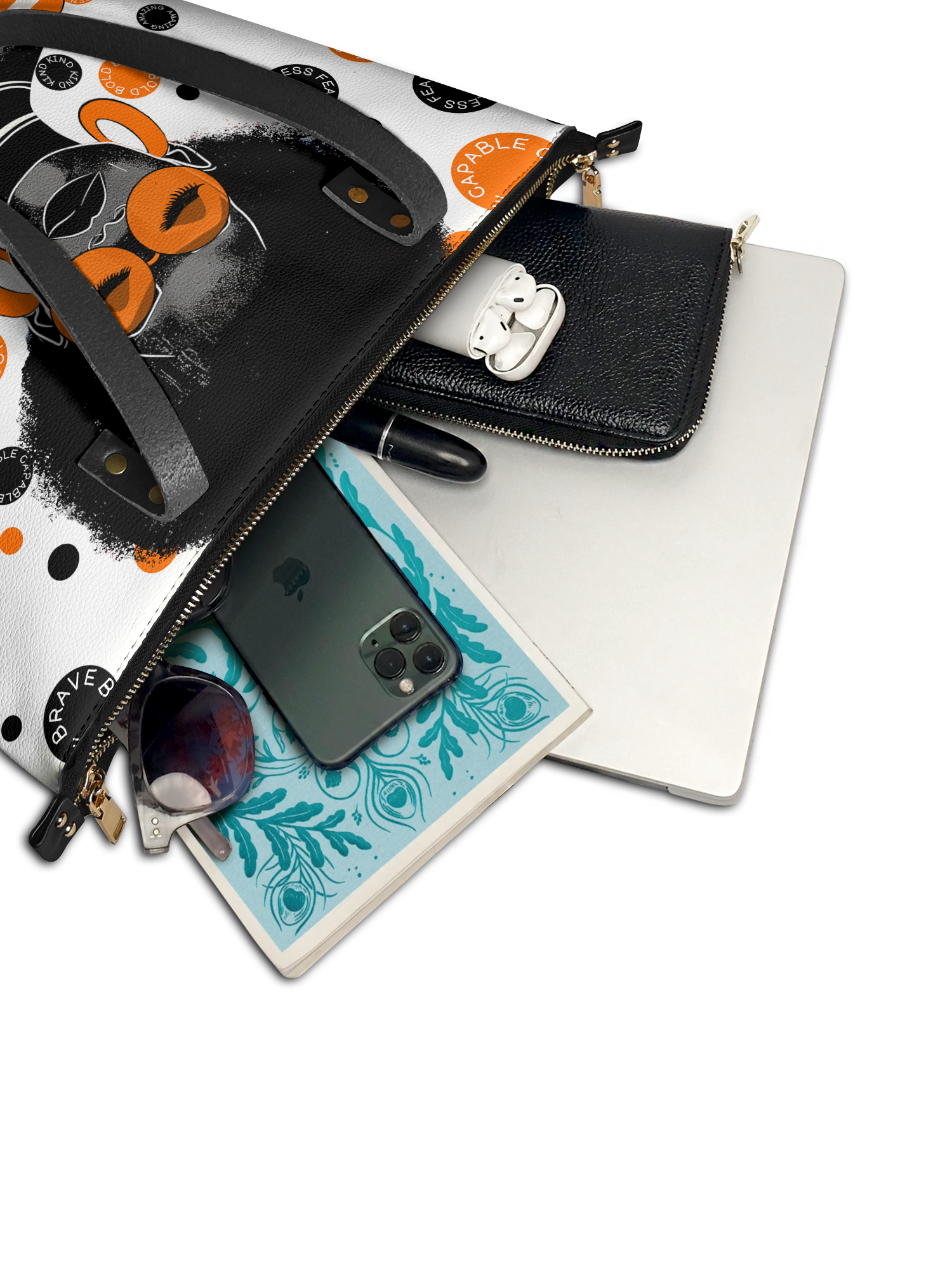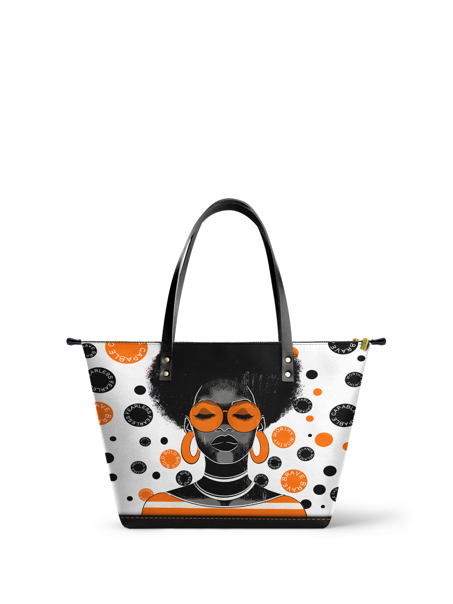 Afroyla "Fahari" Marshmallow Citrus Leather Tote Bag