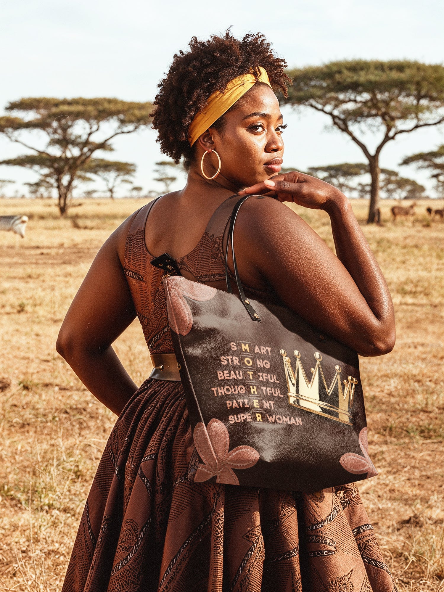Crafted with premium leather, this spacious tote is as functional as it is inspiring. Whether carrying essentials or making a bold statement, Imarimom is the perfect tribute to the queens who shape generations.