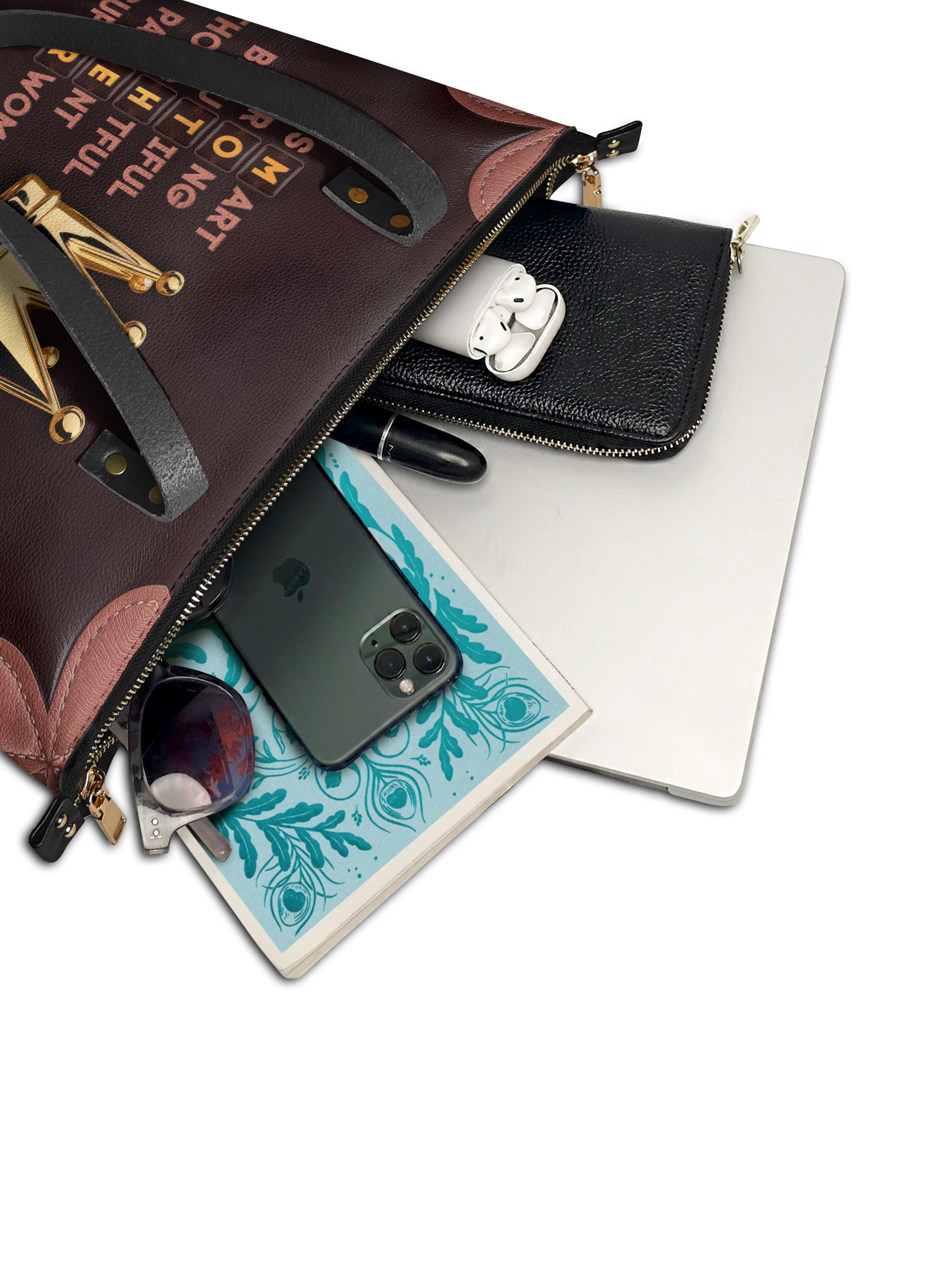 Celebrate the essence of strength and resilience with the Imarimom Leather Tote Bag—a tribute to Black mothers who embody wisdom, grace, and power. Inspired by the Swahili word "Imara" (strong) combined with "Mom", this tote represents the unwavering strength of motherhood.