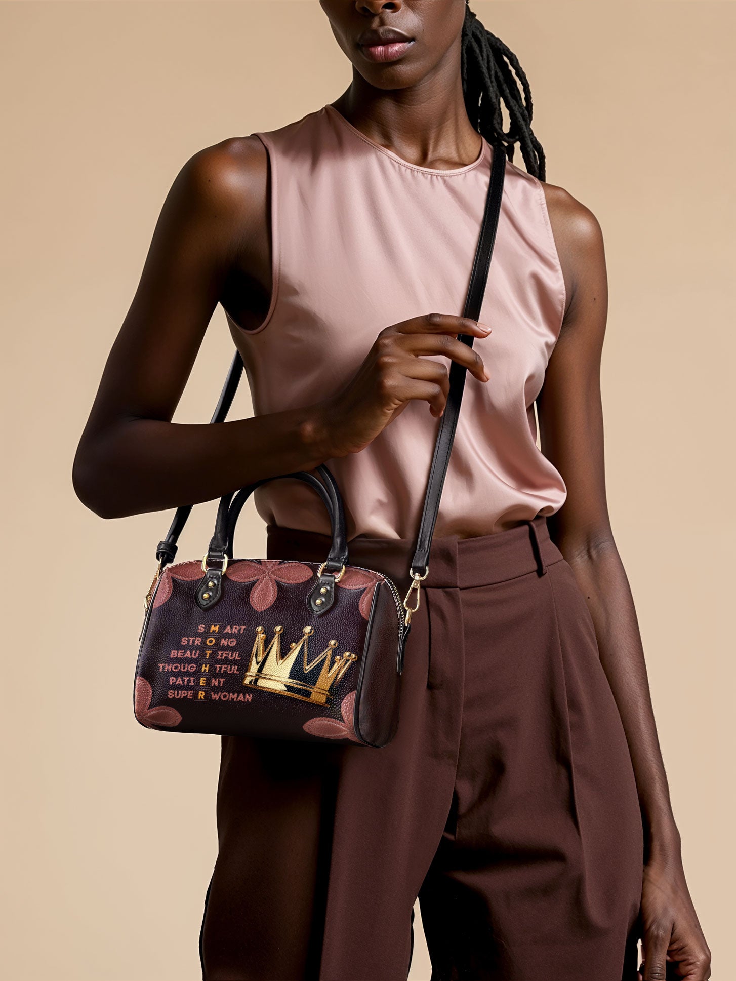 The Imarimom mini satchel is pure mom royalty. With a golden crown front and center and every letter of “MOTHER” spelling out her greatness, this bag is a whole tribute in one glance. She’s smart, strong, thoughtful, and full of grace—and now she’s got the perfect bag to match. Whether it’s a gift or a treat for yourself, this little beauty serves big queen energy every time you carry it.
