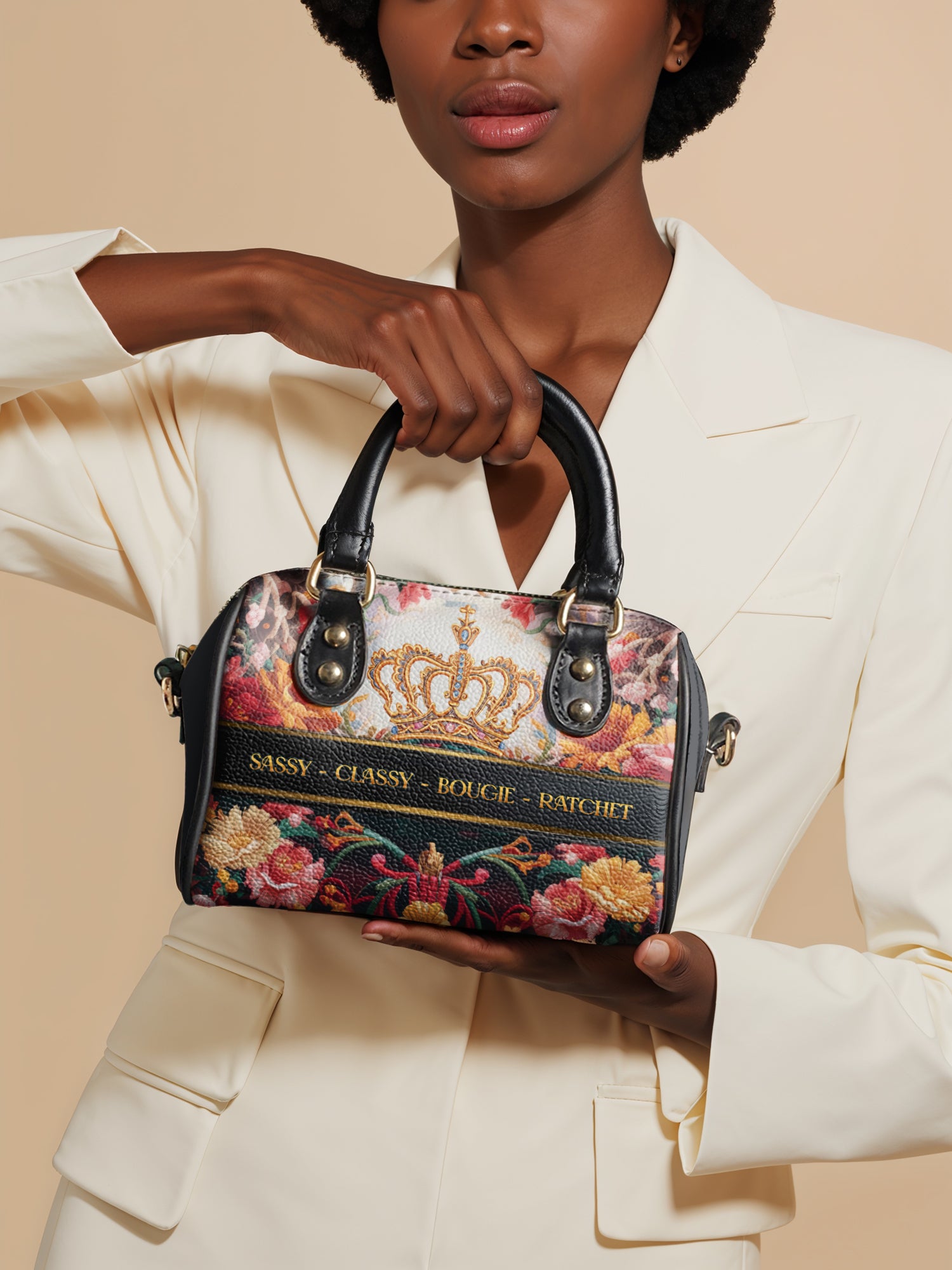 With sturdy top handles, a detachable shoulder strap, and secure zipper closure, it’s versatile enough for daytime chic or a standout evening look.