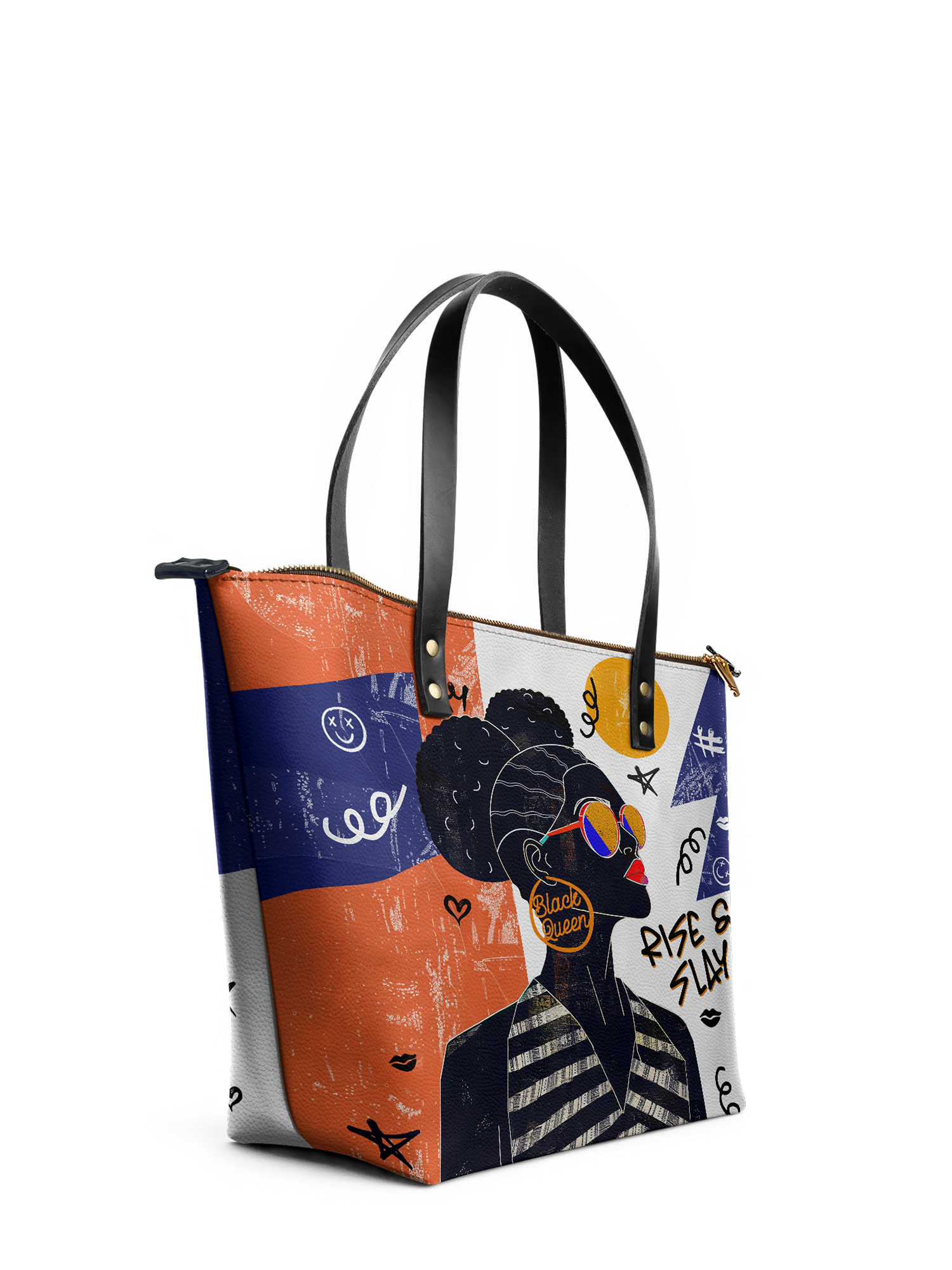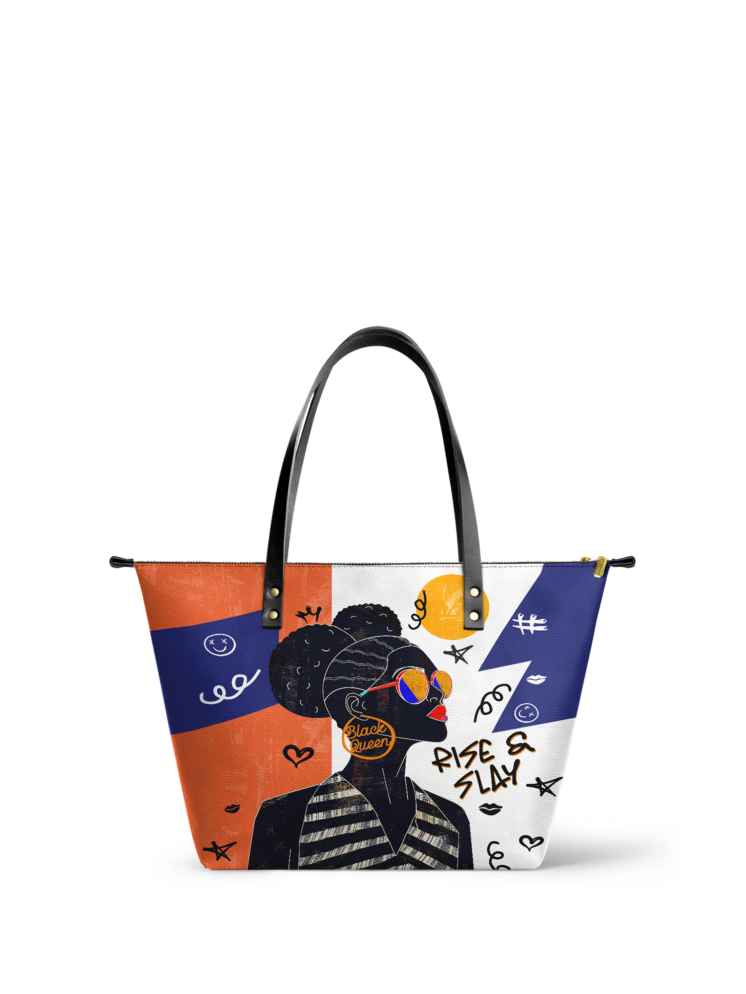 The Sanaa Tote, named after the Swahili word for "art" and "work of beauty," is designed for queens who embrace their power. Part of the Rise & Slay Collection, this tote is a bold reminder to wake up, own your strength, and take on the world with confidence.