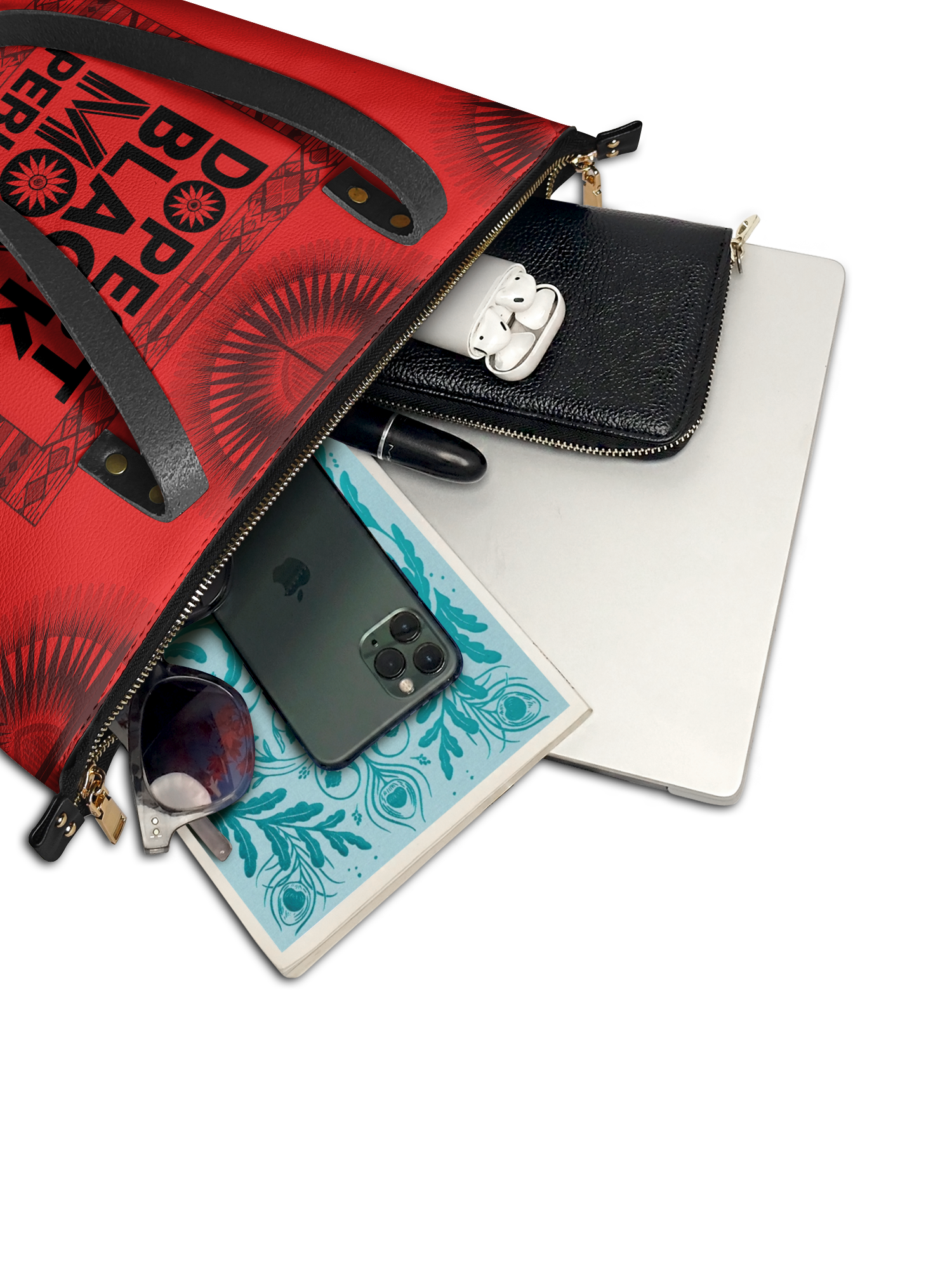 I love every thing about this tote: the colors, the feel, the look, and the size! 🔥🔥🔥 I have not worn it out yet, since it, literally, just arrived! But, I am excited to go everywhere and nowhere with my new bag! Afroyla, your bags/purses/totes are a hit, and I am wishing you much continued success— as I await my next order!! 😃 BTW, I love the matching wallet/wristlet, too! 🥰