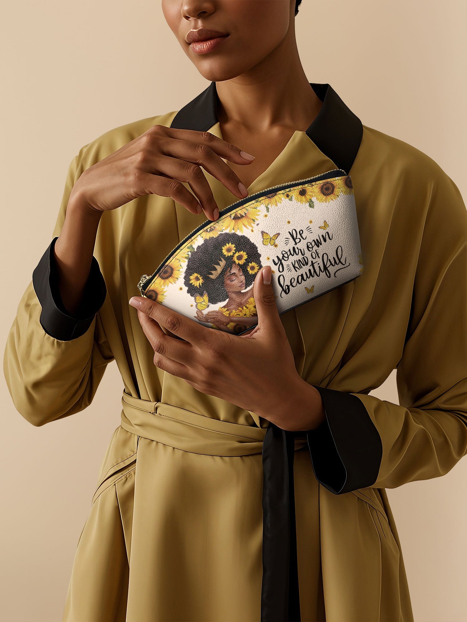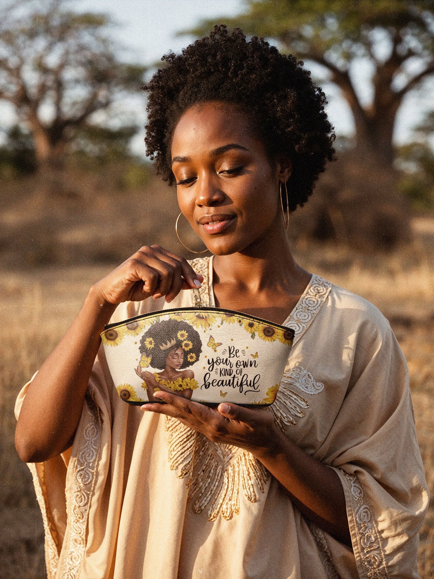 Let your beauty bloom with the Zuriya Eclipse Makeup Bag. Adorned in sunflowers and sweet affirmation, it’s a daily whisper to be your own kind of beautiful. Bright, gentle, and rooted in self-love, this bag holds more than makeup—it holds space for you to shine, softly and boldly.