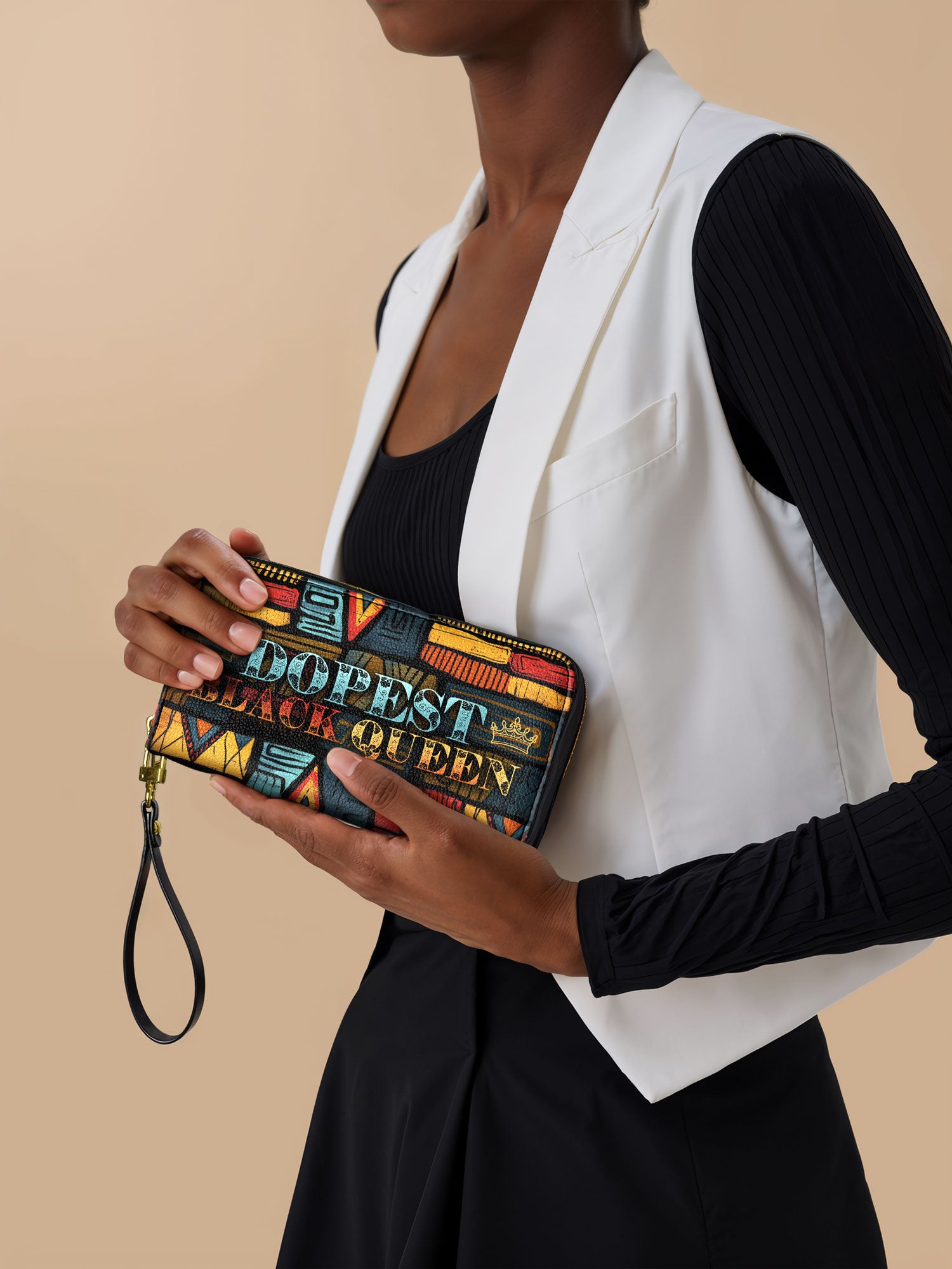 This wallet is giving main character energy. The Dopeya leather wallet is bold, unapologetic, and rooted in the power of heritage—with rich African-inspired prints and that crown-worthy reminder: DOPEST BLACK QUEEN. Whether you’re pulling it out at brunch, Bible study, or the beauty supply store, you’re carrying more than cards and cash—you’re carrying proof that your Black girl magic can’t be missed. It’s a pocket-sized flex. Because you’re not just a queen. You’re the dopest one. Period.