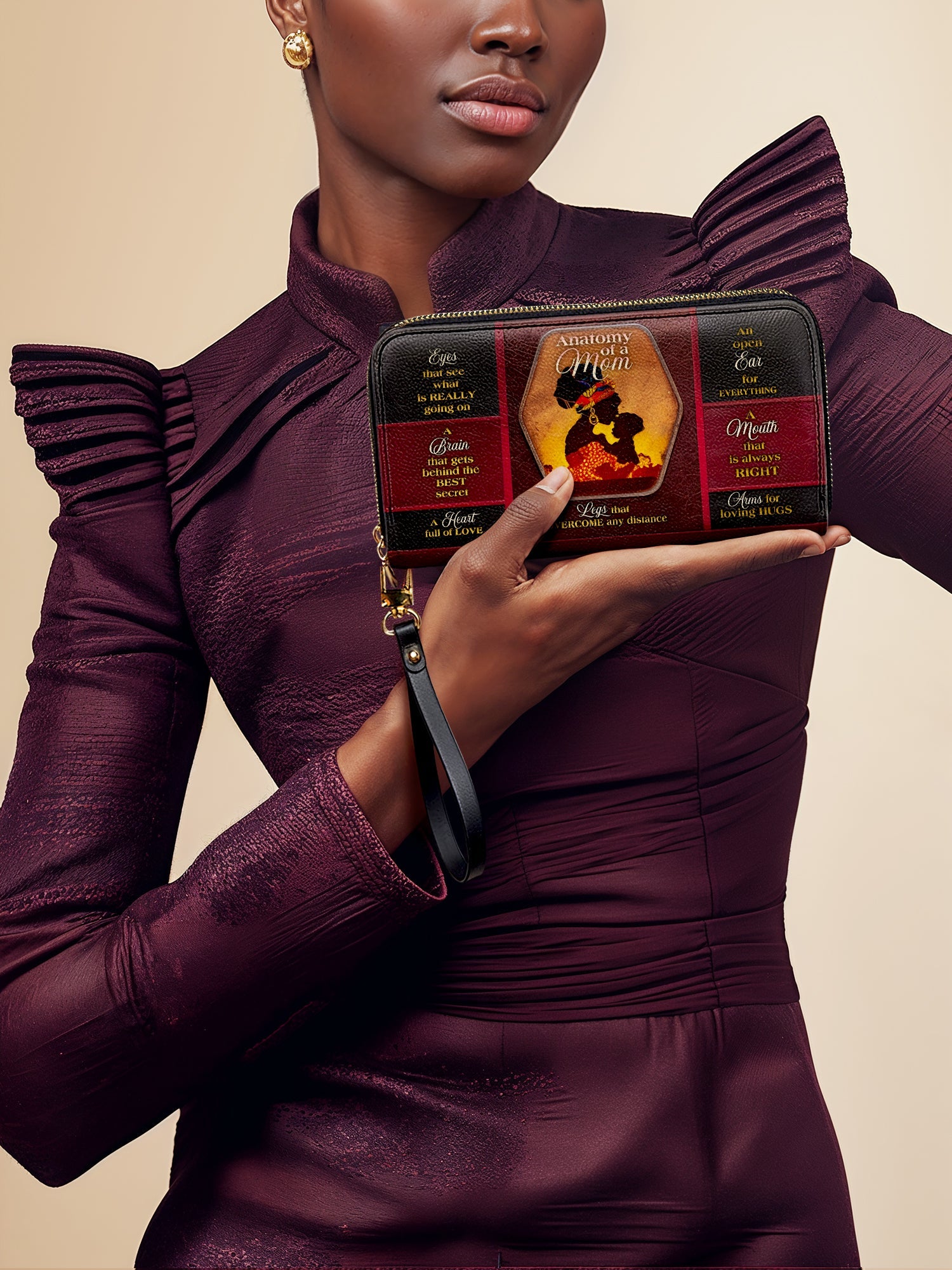 The Mamoya Wallet, inspired by Mama (mother) and Joya (joy), is a tribute to the love, wisdom, and strength of Black mothers. Featuring "Anatomy of a Mom," this design highlights the many ways a mother nurtures, protects, and uplifts.