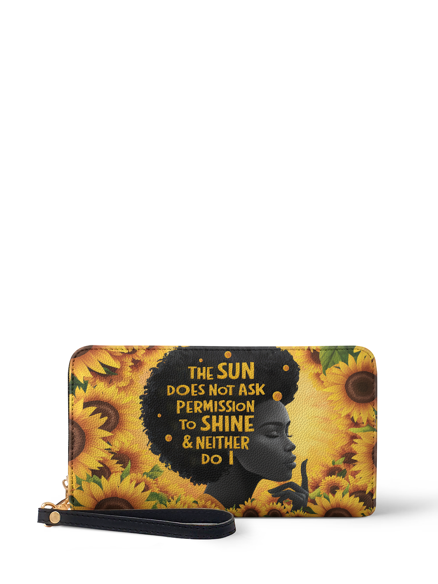 The "Sunaya" wallet isn’t just an accessory—it's your everyday reminder to own your shine. Crafted in luxe leather featuring a gorgeous sunflower design, it boldly states: "The sun does not ask permission to shine & neither do I."