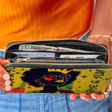 This wallet is spacious and stylish, holding beauty essentials, cash, cards, and a phone with ease.