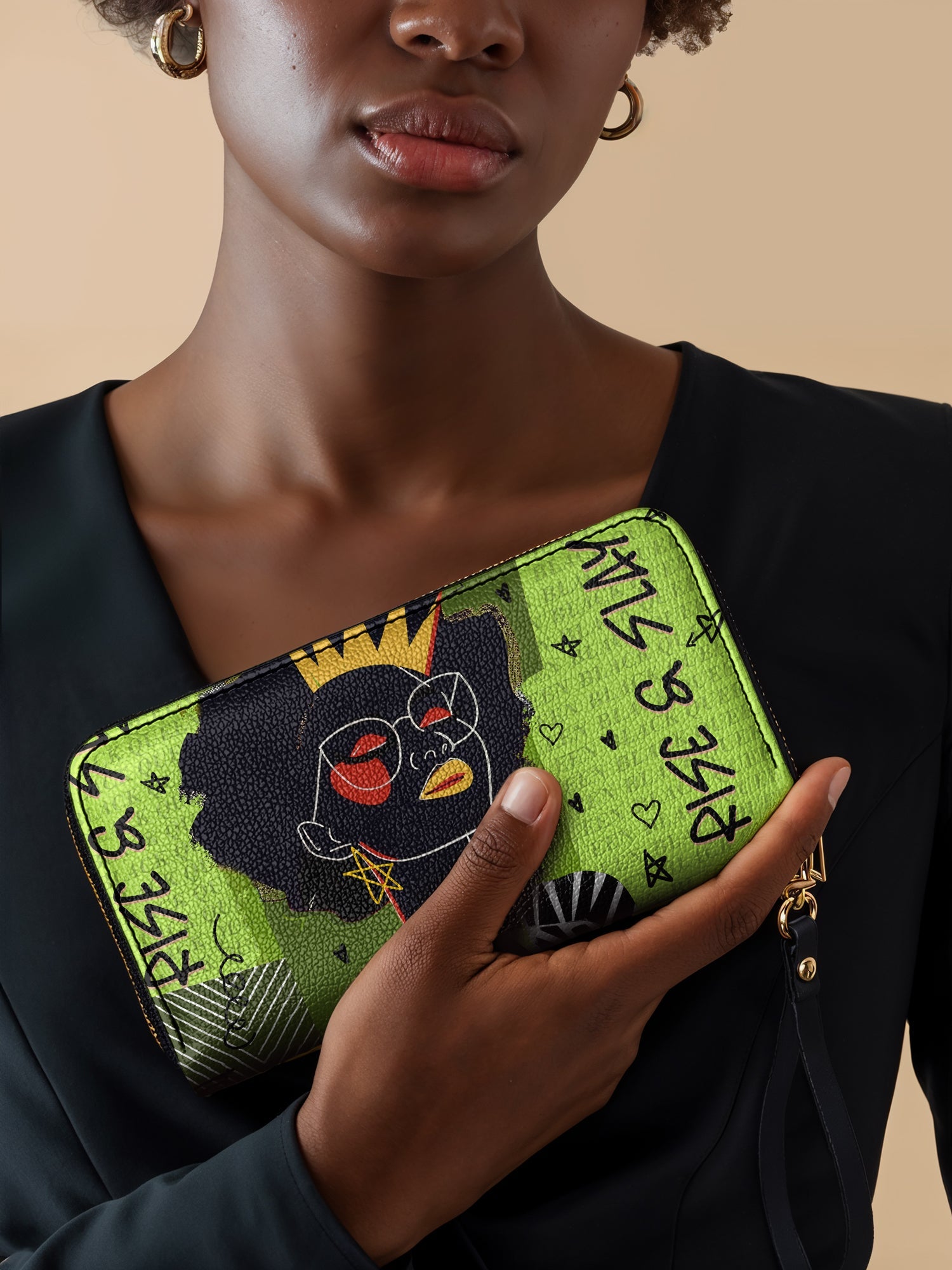 The secure zipper closure keeps everything safe, while the detachable wrist strap offers effortless carrying—perfect for work, travel, or a chic night out.