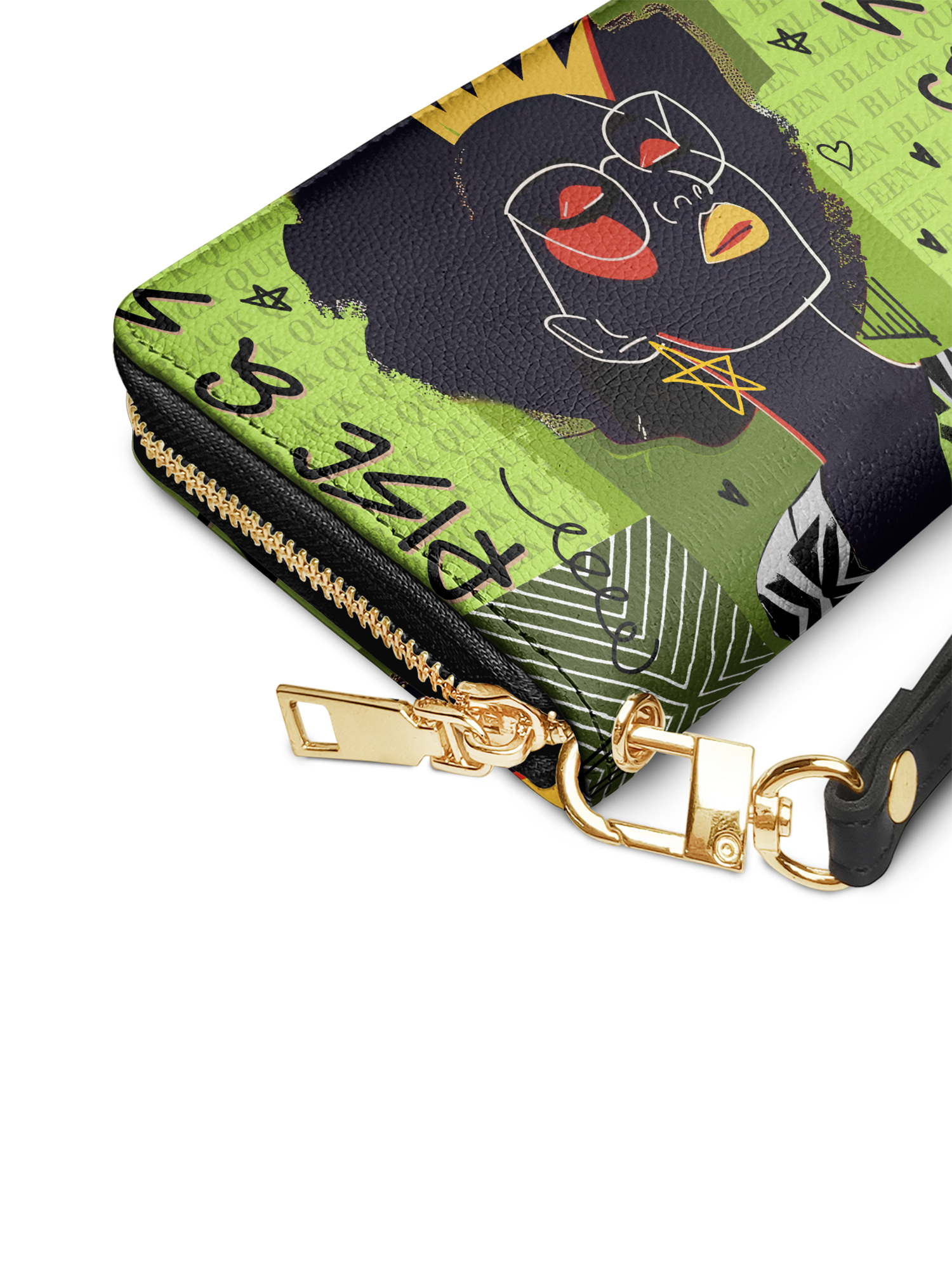 This wallet is spacious and stylish, holding beauty essentials, cash, cards, and a phone with ease.
