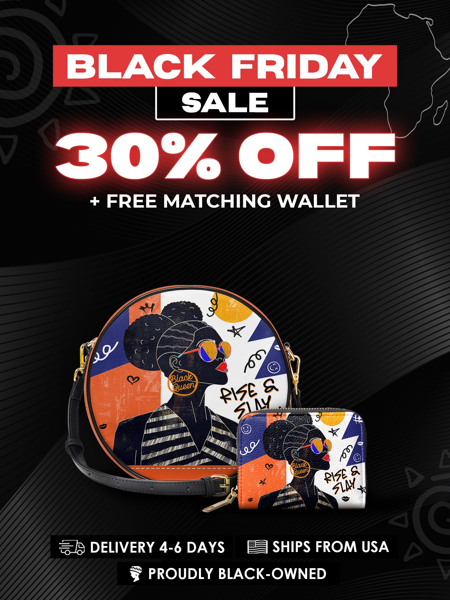 Sanaa means ‘work of art’—and this bag proves why. Bold, brilliant, and unapologetically fly, the Sanaa Circle Bag is for the Black Queen who walks like royalty and slays without effort. With every step, every stare, this bag reminds the world: You are the masterpiece AND the artist.