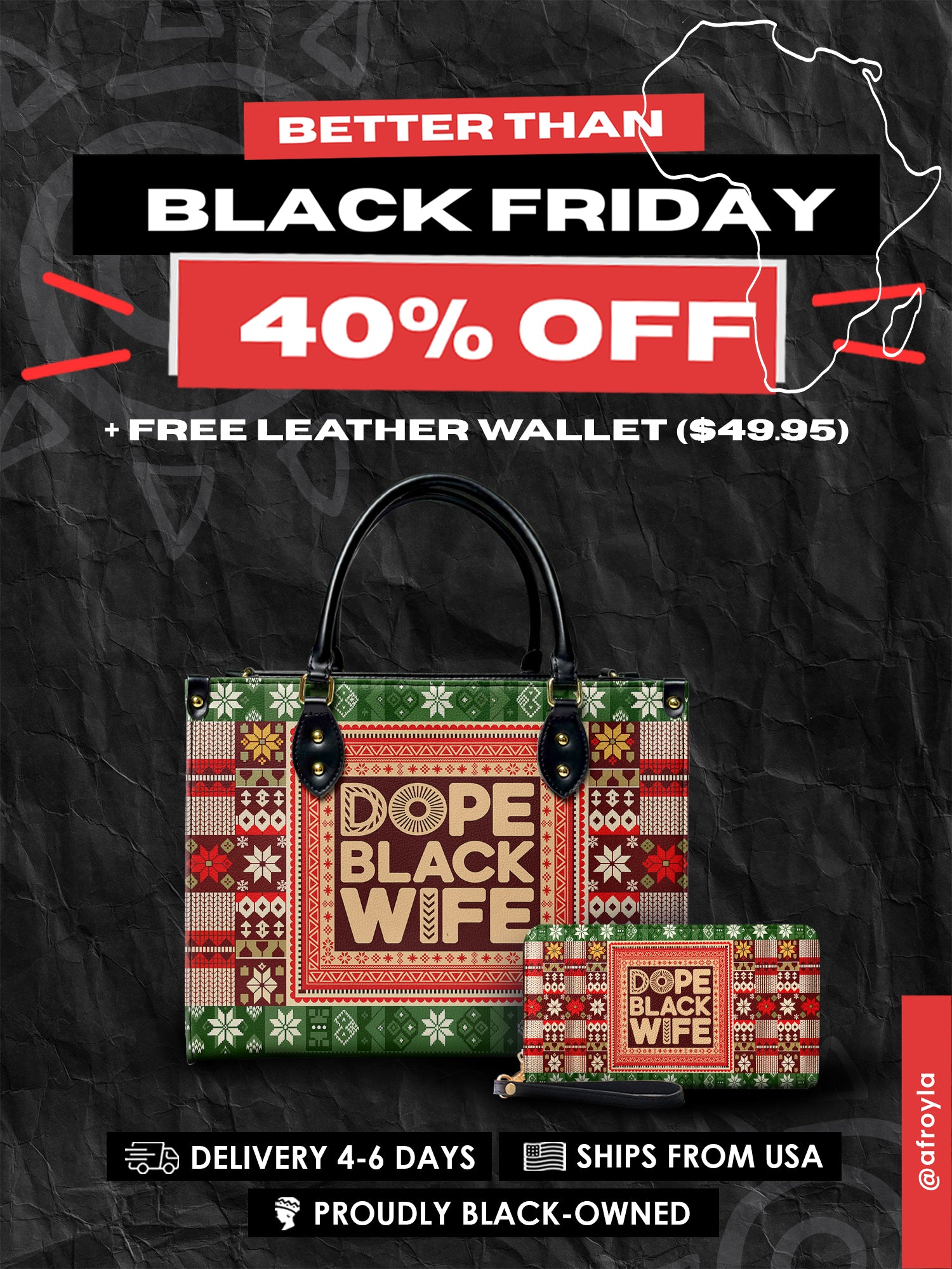 Afroyla "Dope Black Wife" Frosted Pine Leather Handbag Deal