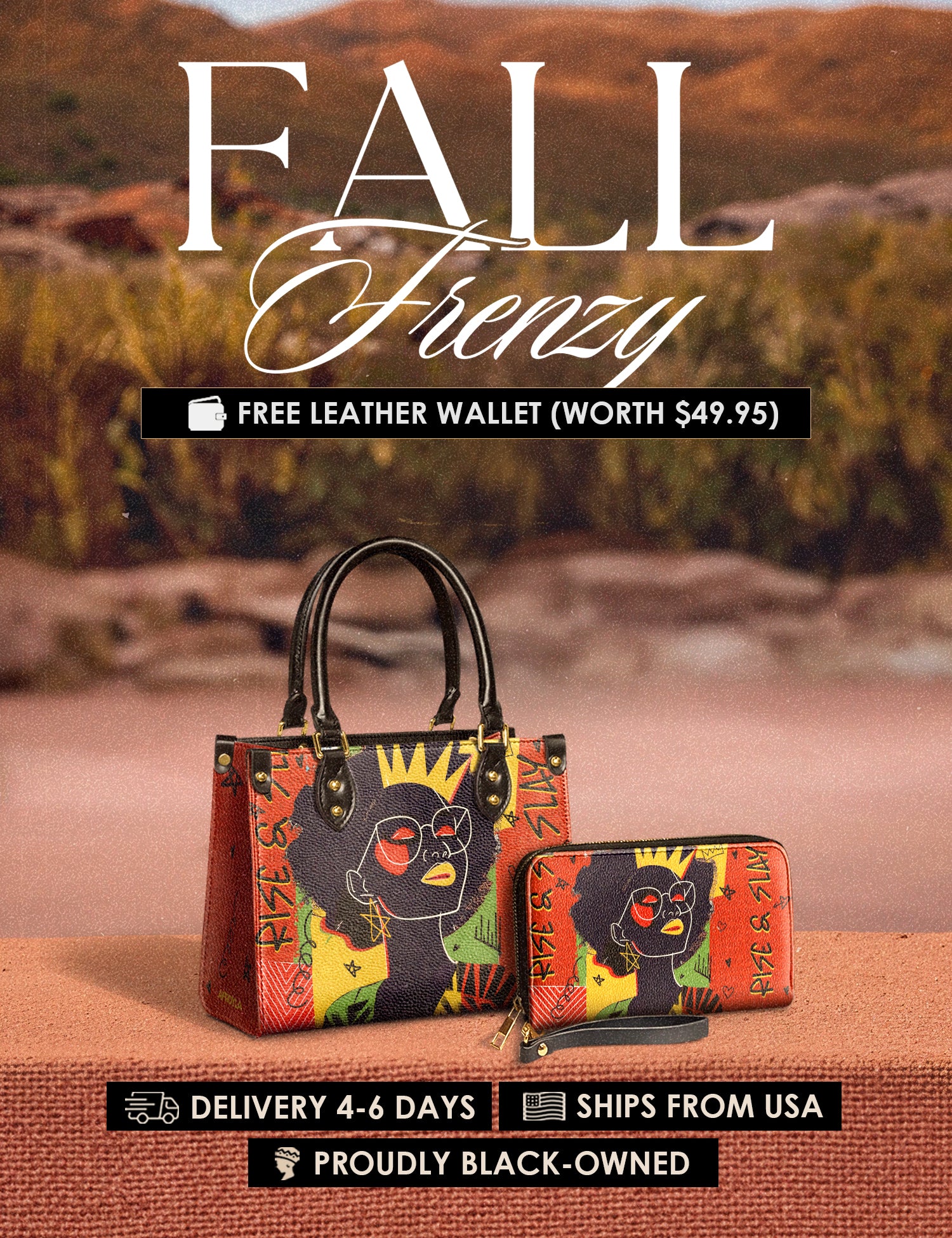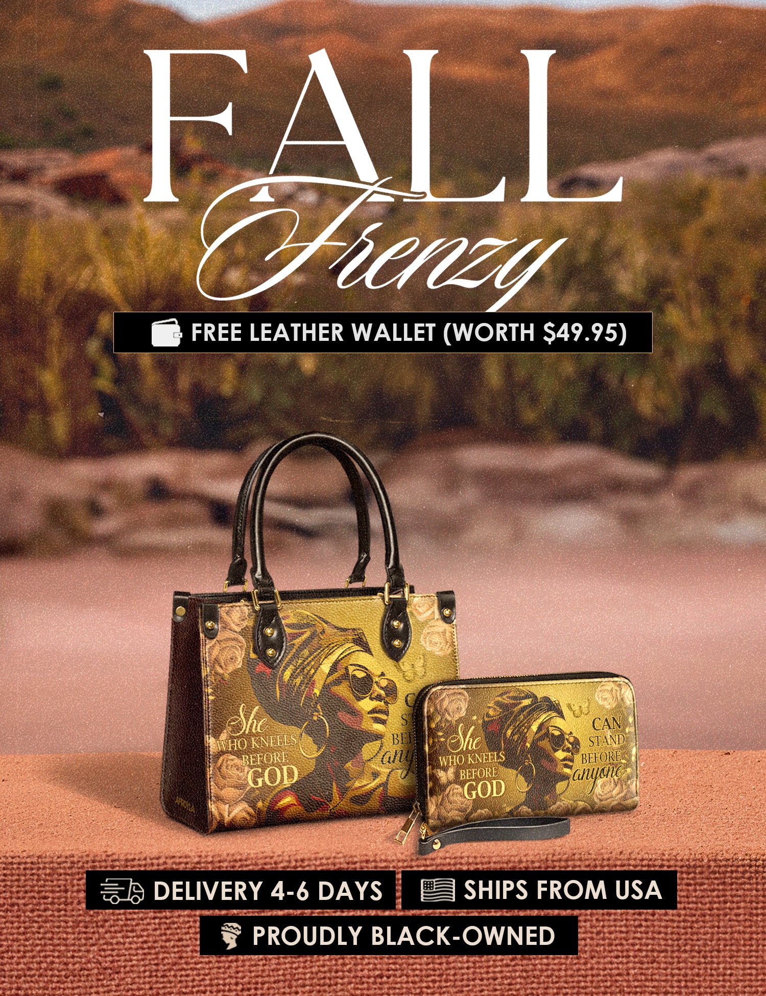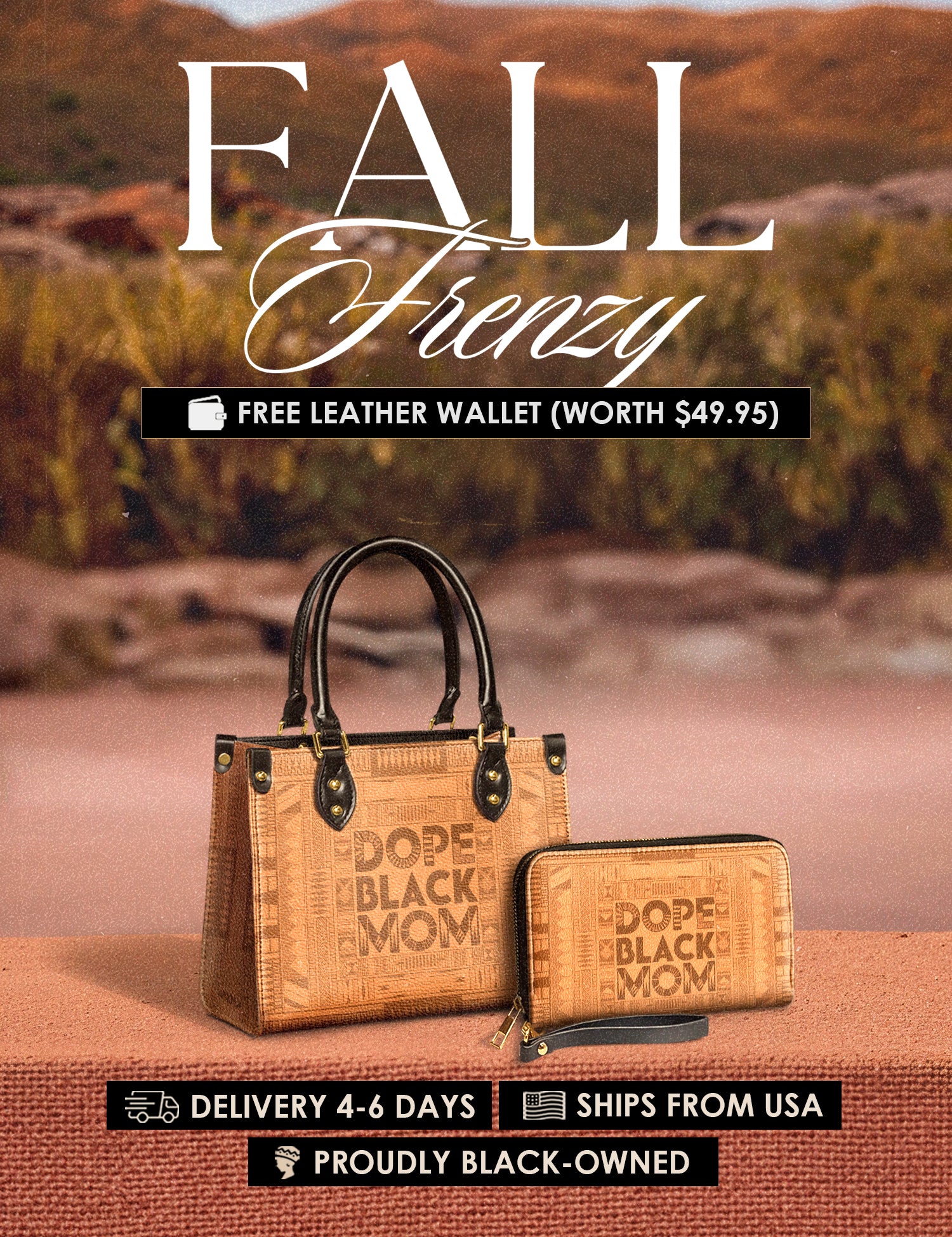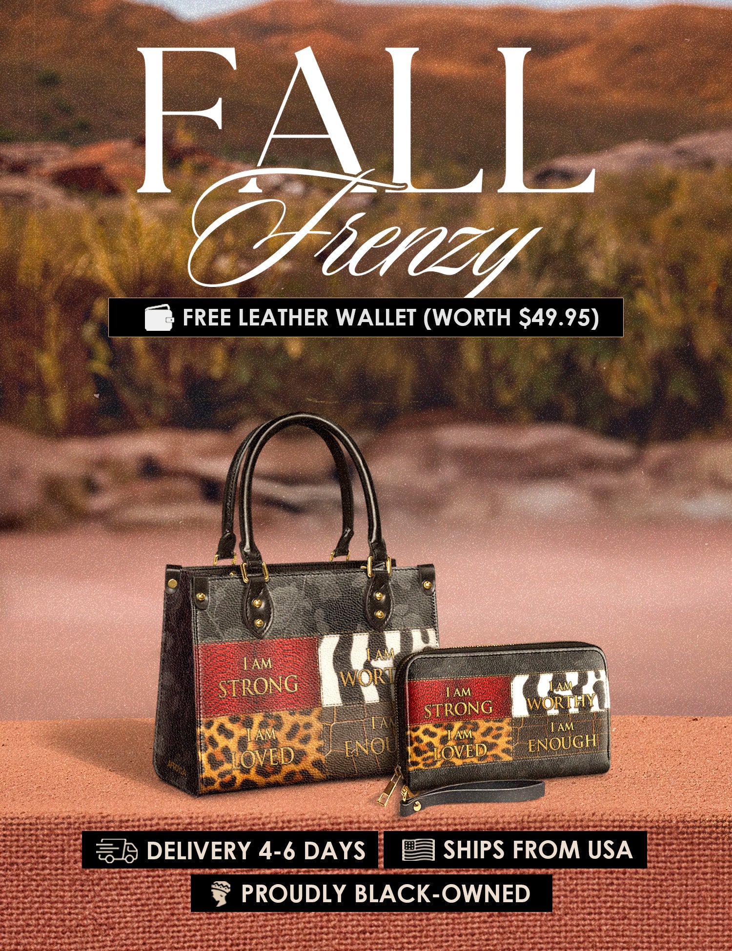 Fall Frenzy Special Deal: Get a FREE $49.95 leather wallet when you buy any bag. Offer ends October 31st. No discount code needed – just add to cart and save.