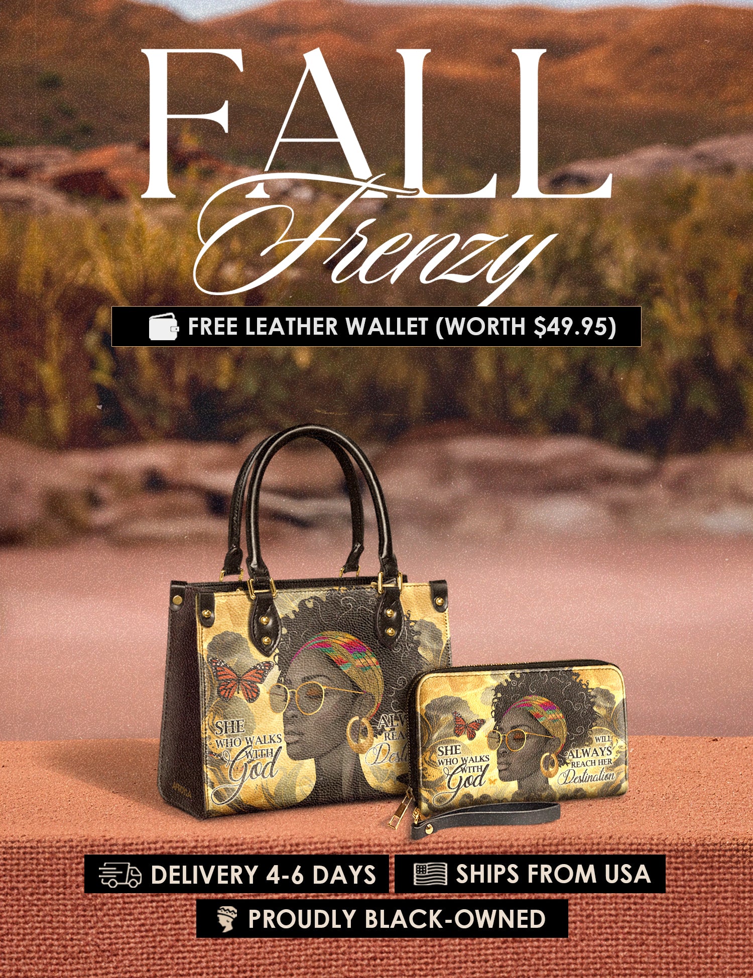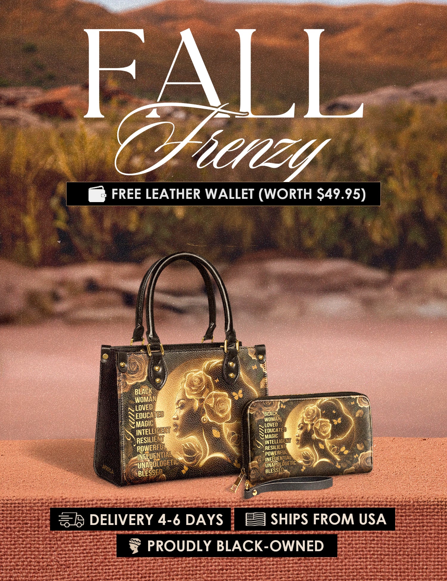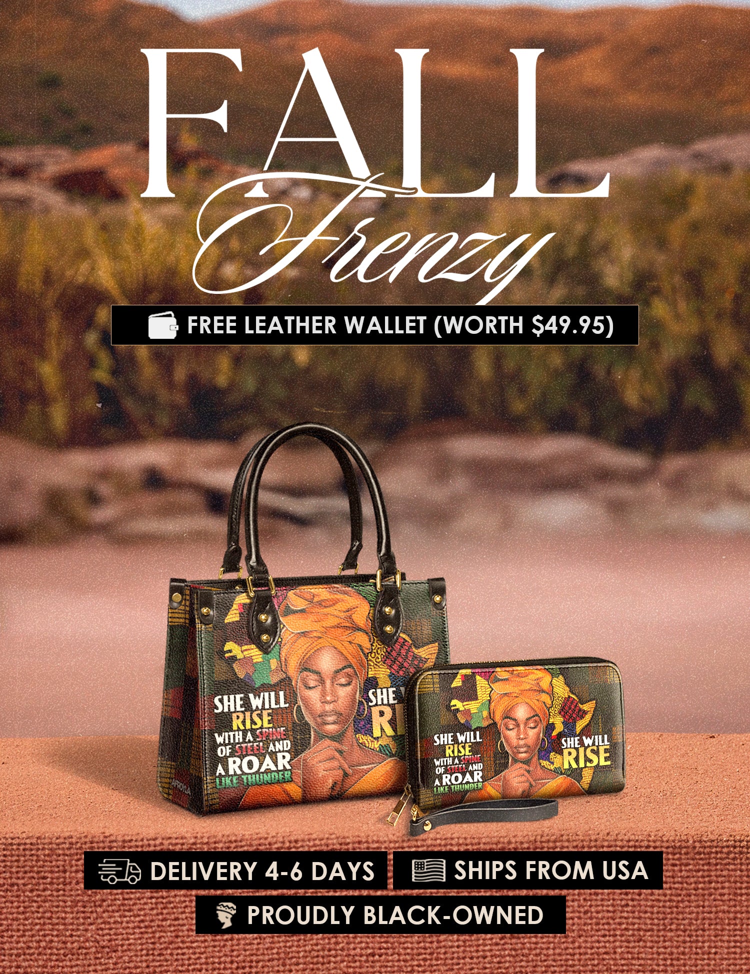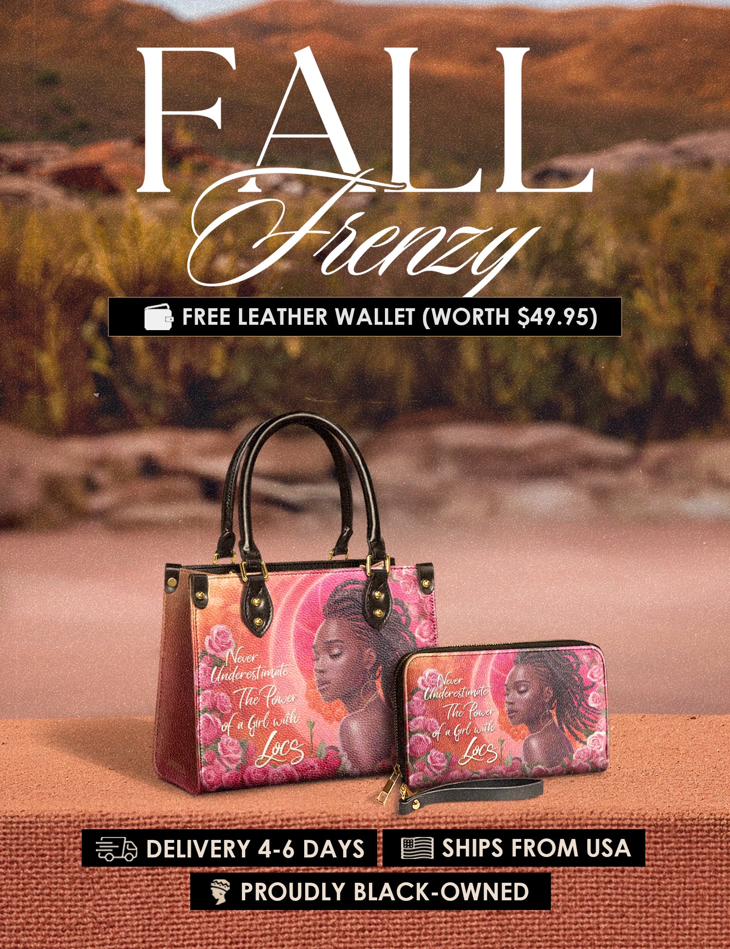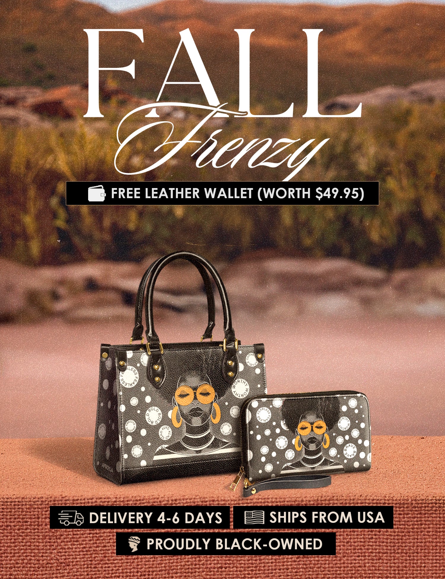 Fall Frenzy Special Deal: Get a FREE $49.95 leather wallet when you buy any bag. Offer ends October 31st. No discount code needed – just add to cart and save.