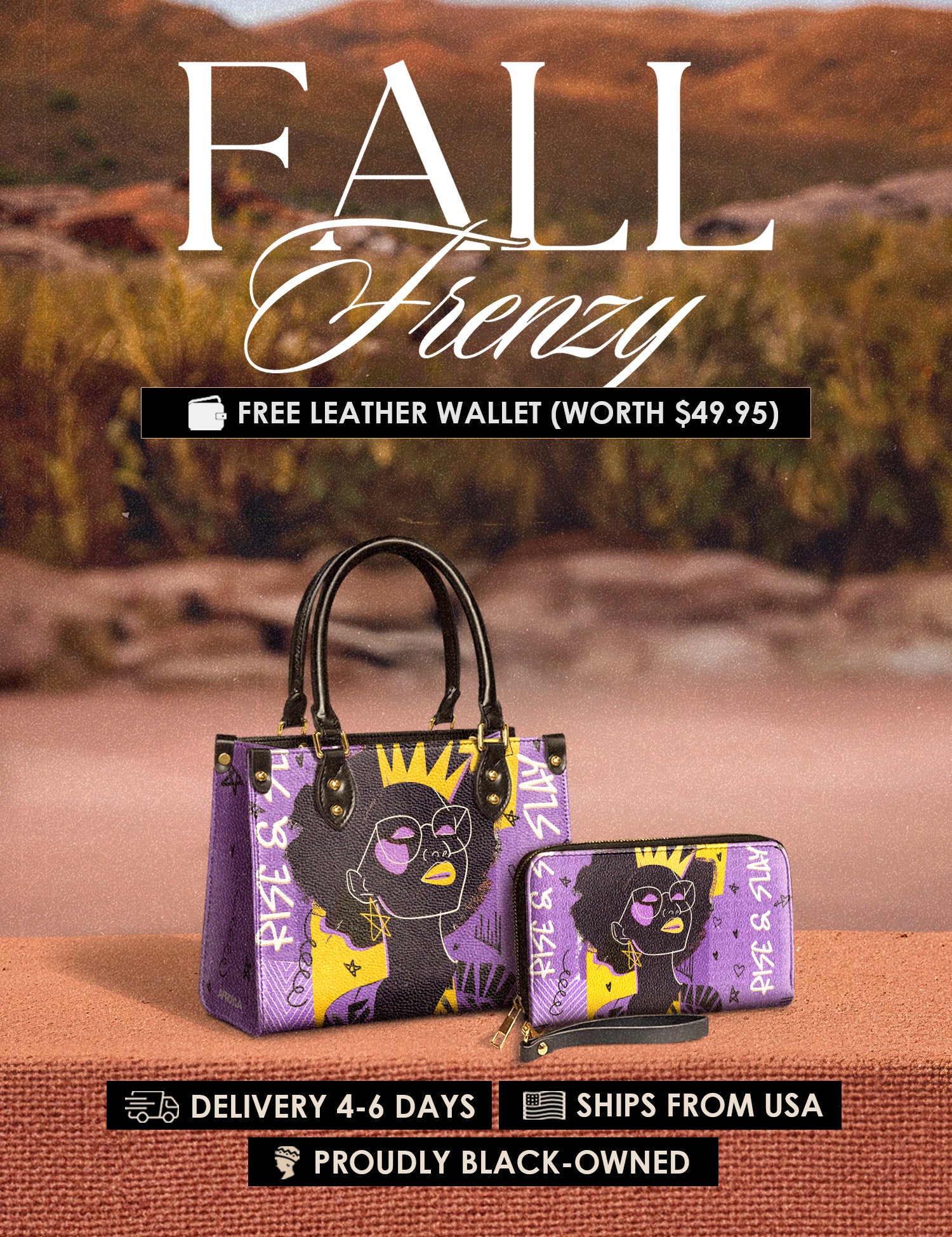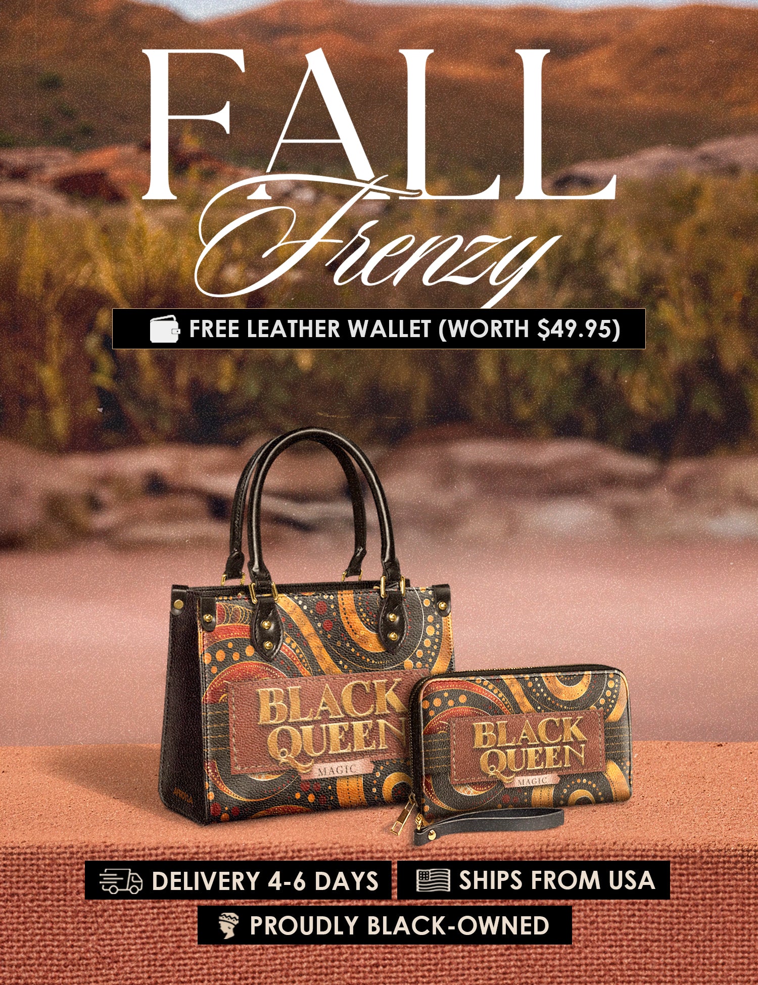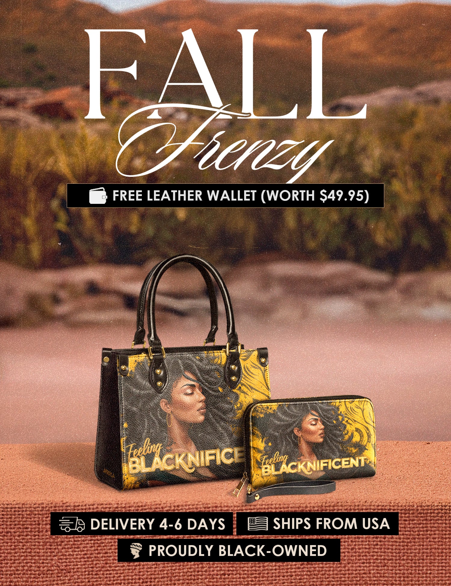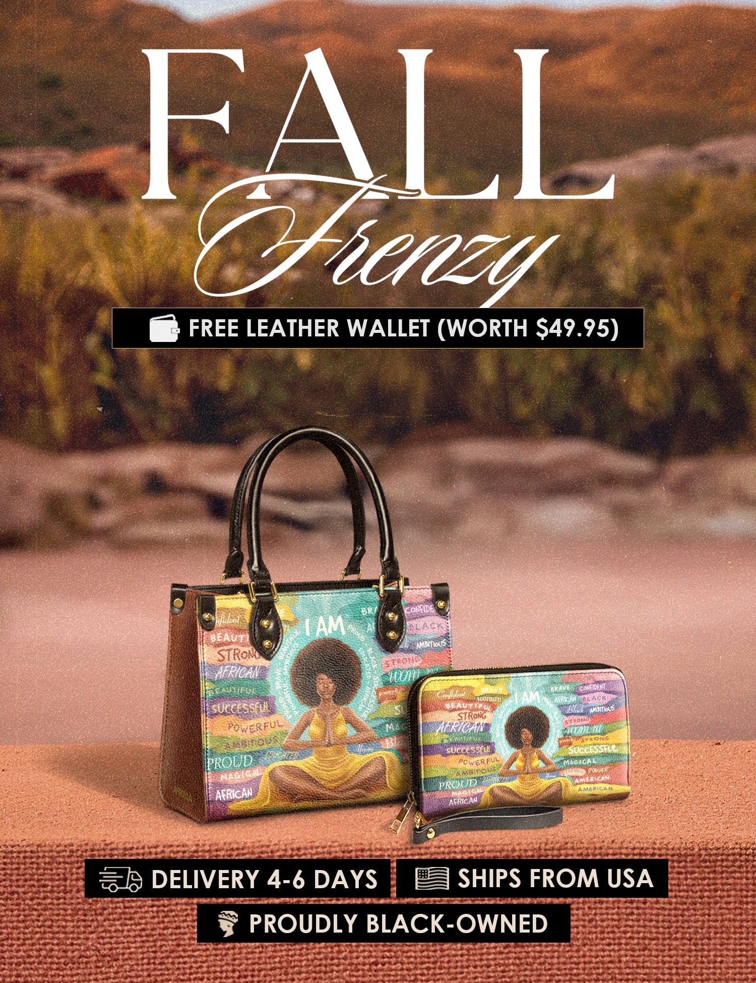 Fall Frenzy Special Deal: Get a FREE $49.95 leather wallet when you buy any bag. Offer ends October 31st. No discount code needed – just add to cart and save.
