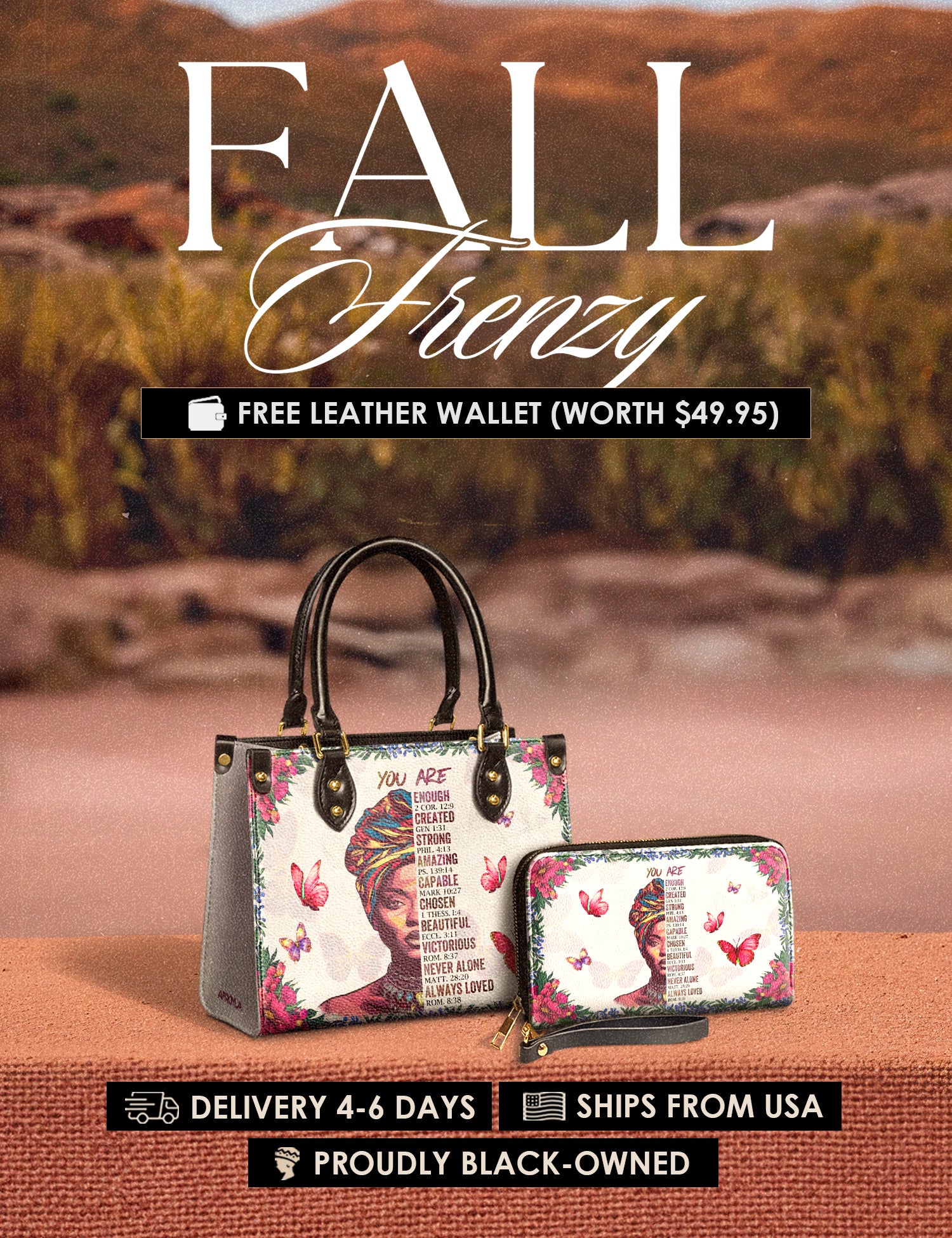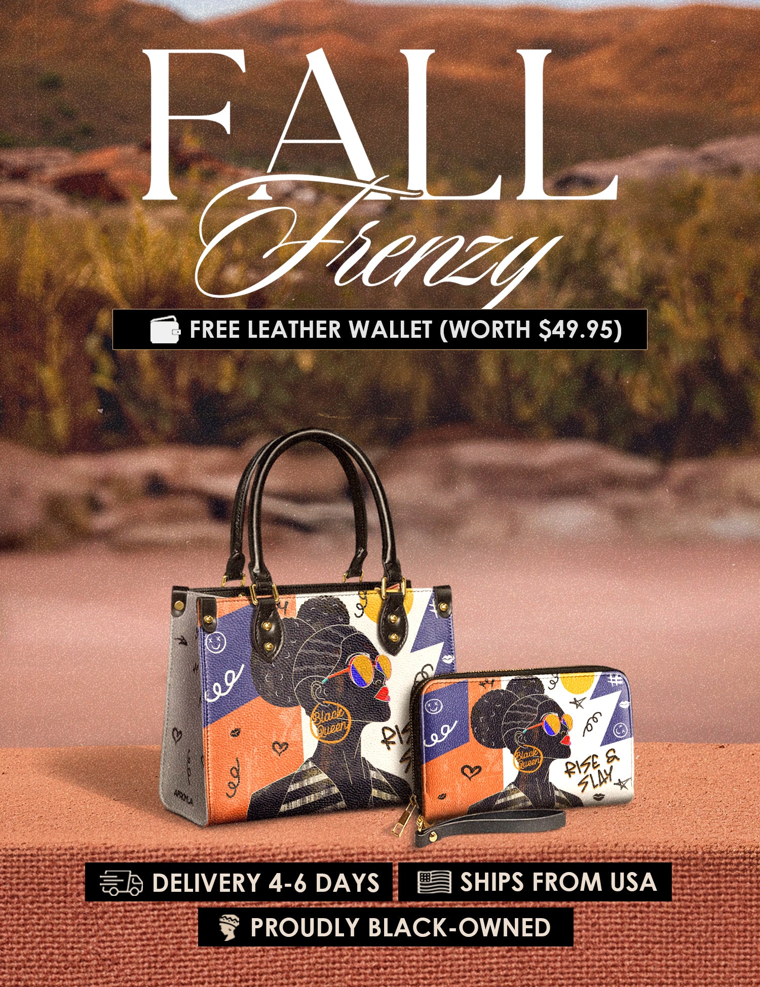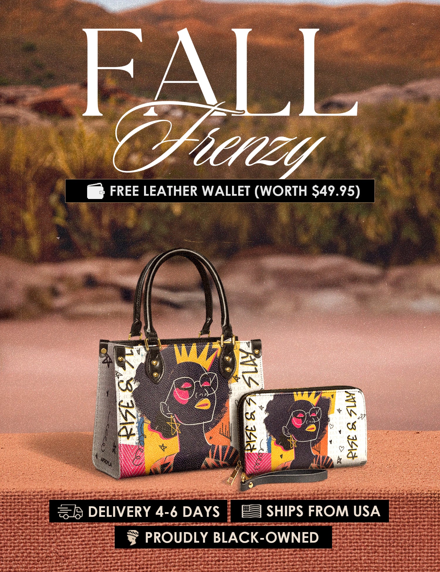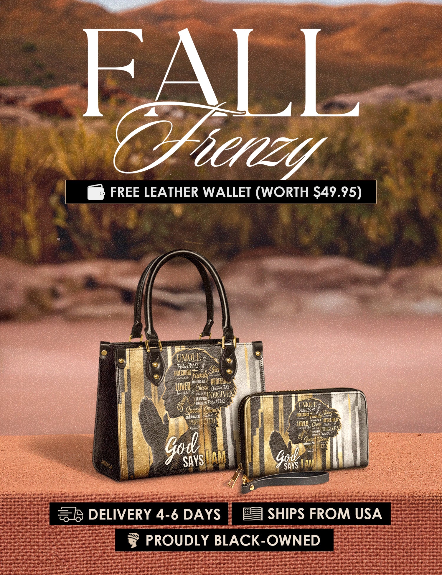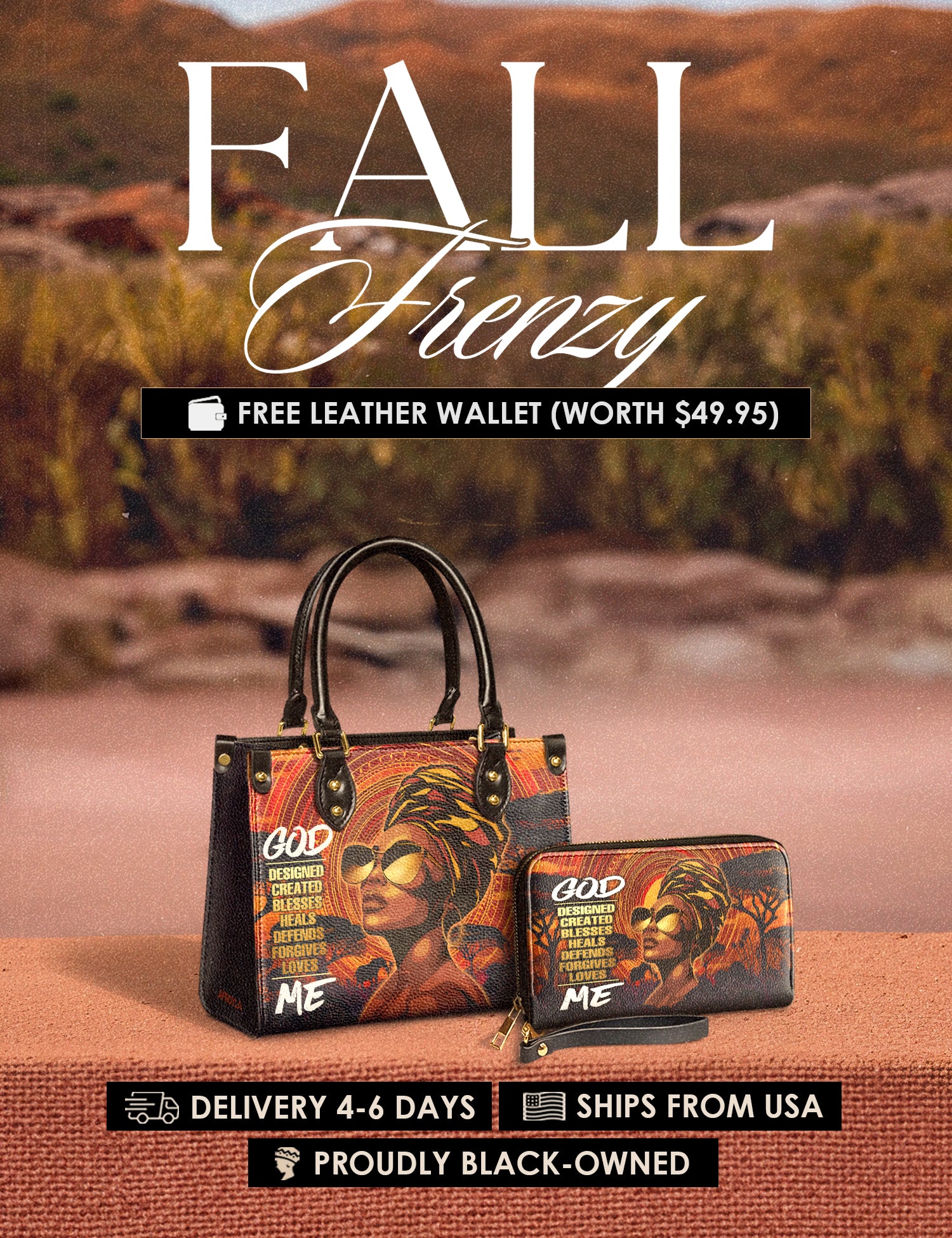 Fall Frenzy Special Deal: Get a FREE $49.95 leather wallet when you buy any bag. Offer ends October 31st. No discount code needed – just add to cart and save.